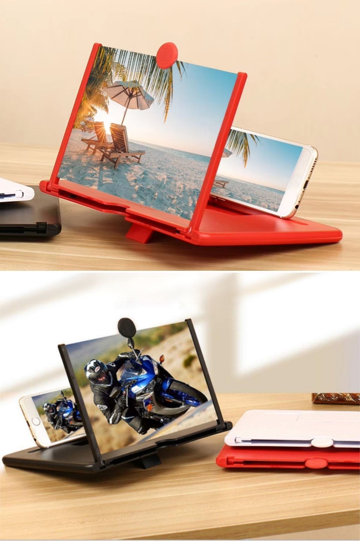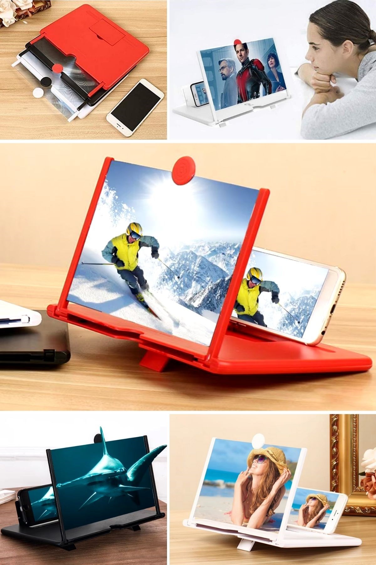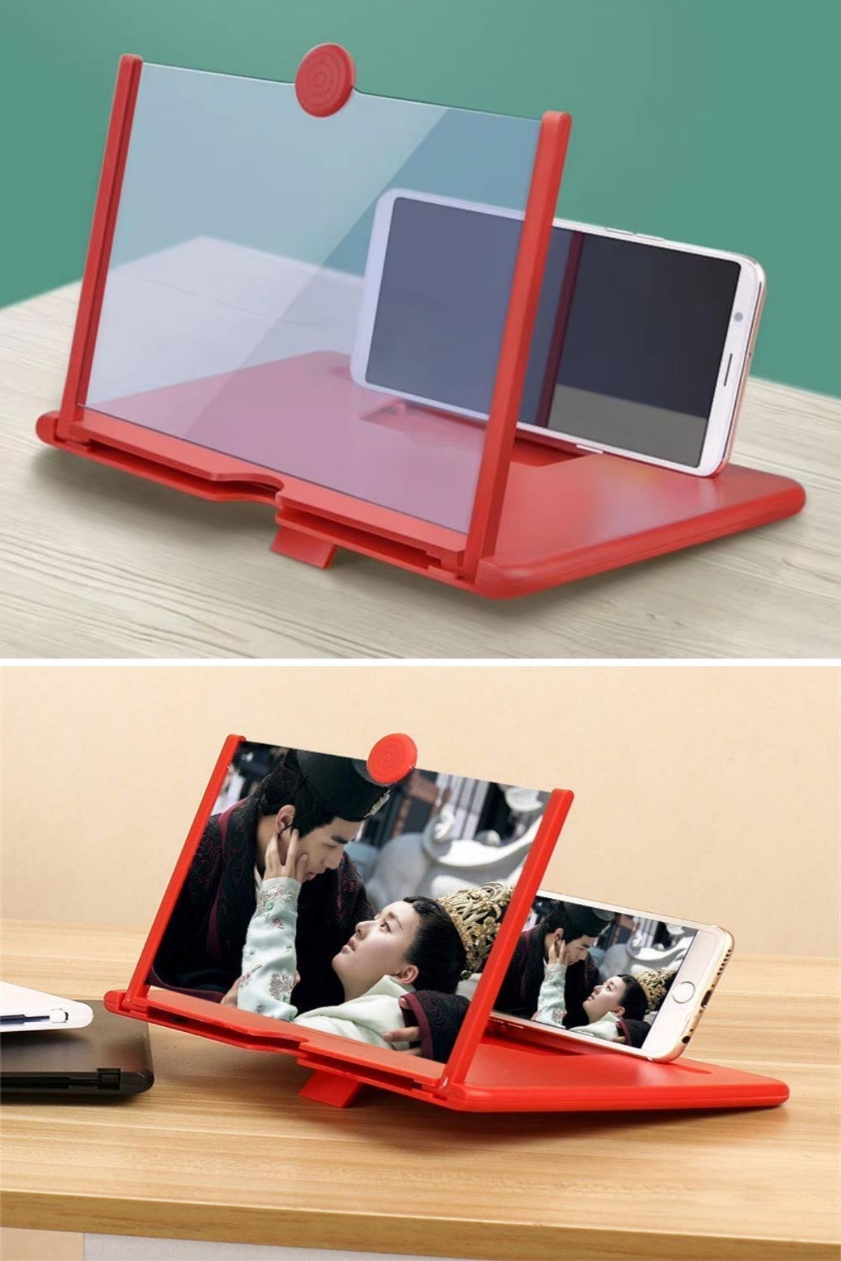 BUFFER® Telefon ve Tablet Ekran Büyütücü Aparat, günlük kullanımda telefon ve tablet ekranınızı büyütmek için mükemmel bir seçenektir. Şık kırmızı rengi, pratik kullanımı ve göz yormayan tasarımı ile seyahatlerde, evde veya ofiste izleme keyfinizi artırır.