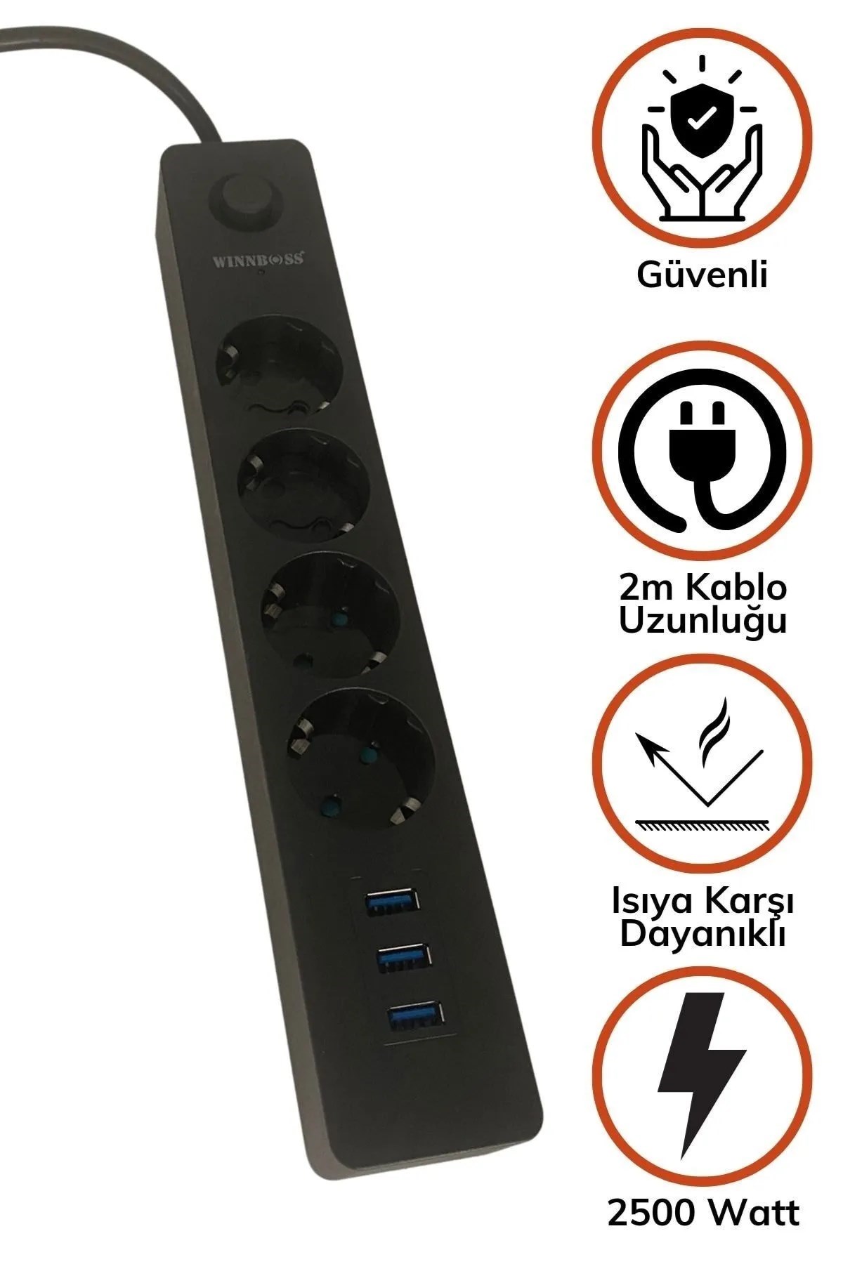 BUFFER® Termak Akım Korumalı 4 Priz 3 USB Girişli Uzatma Kablosu Güç&Şarj