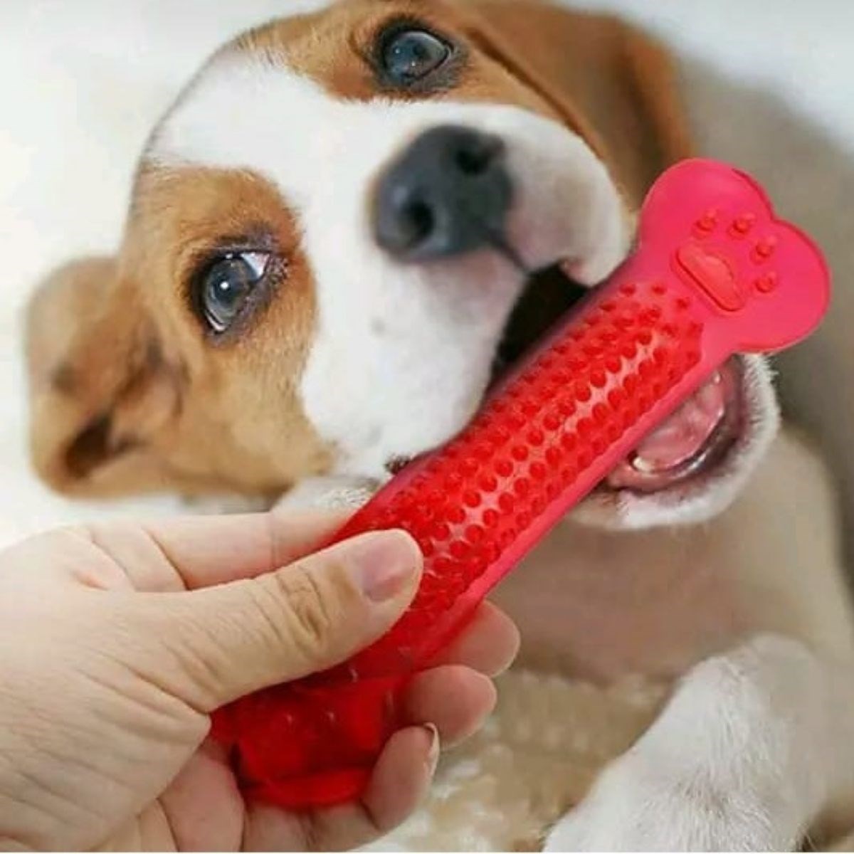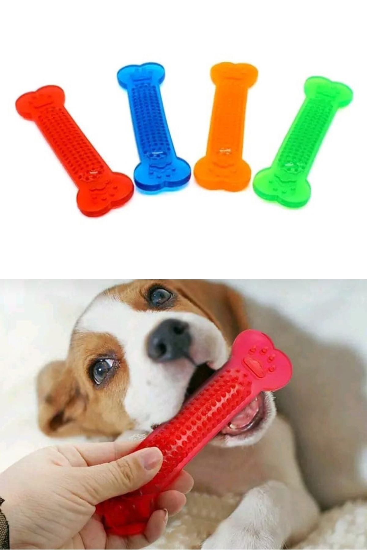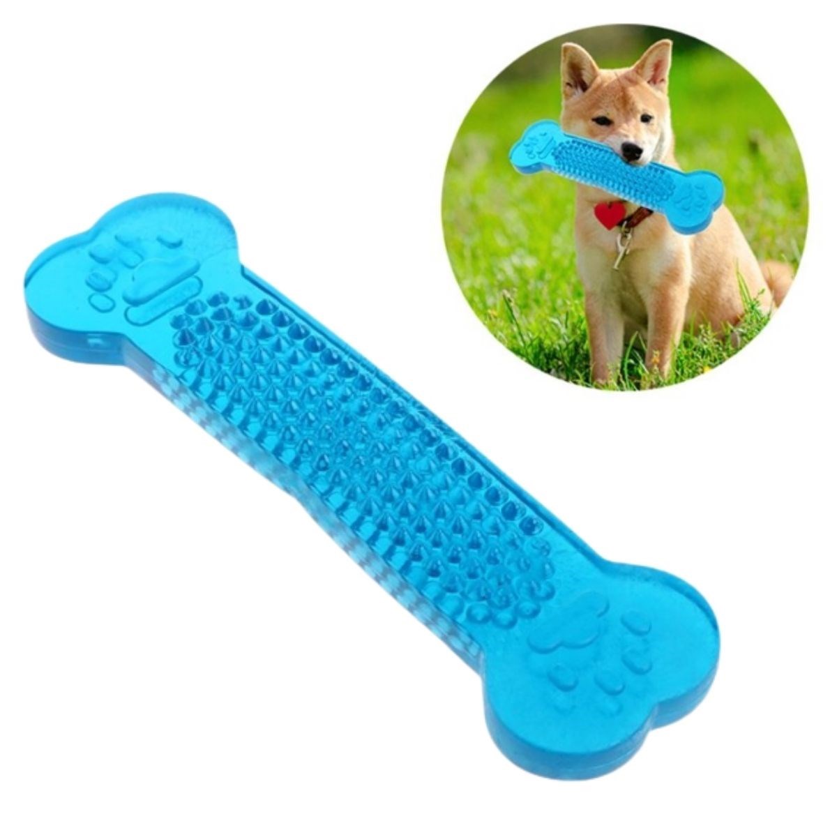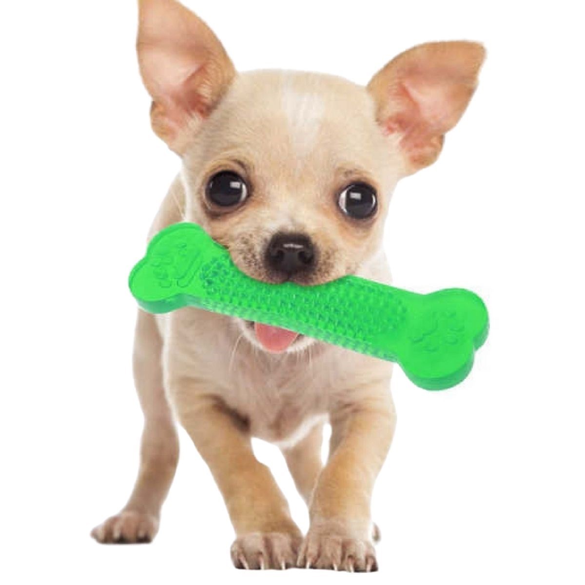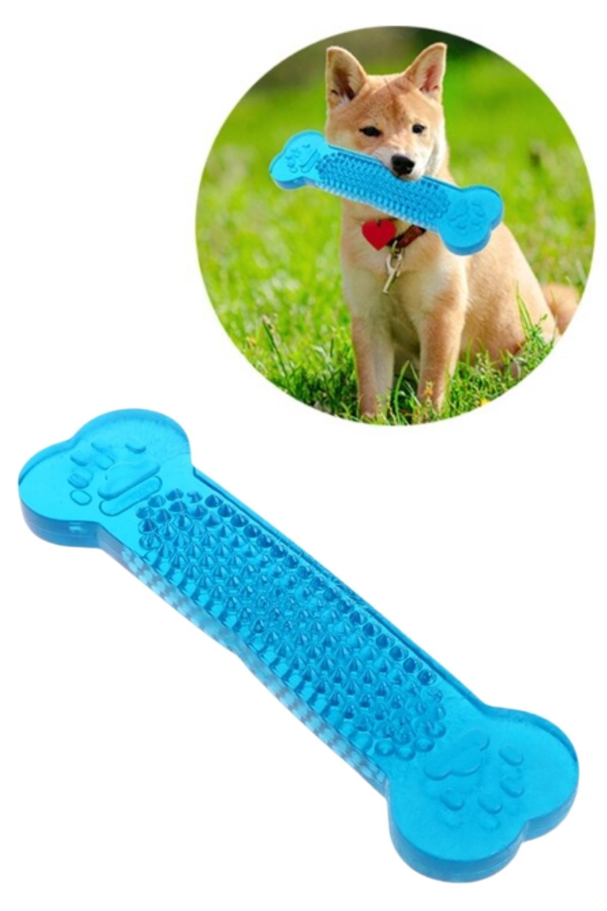 Plastik diş kaşıma ve temizleme kemiği küçük ve yavru köpeklerinizin diş çıkartırken çiğneme isteği için de kullanılabilir Yeni çıkan dişler kaşıntı yaptığında oyuncağın tırtıklı yüzeyini kaşımak için kullanırken aynı zamanda sağlıklı ve temiz dişler çıkartmalarına yardımcı olur