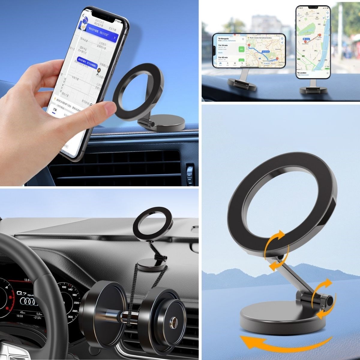 - Güvenli Tutuş: Güçlü manyetik yapısı sayesinde telefonunuzu güvenle tutar ve sarsıntılara karşı korur.
