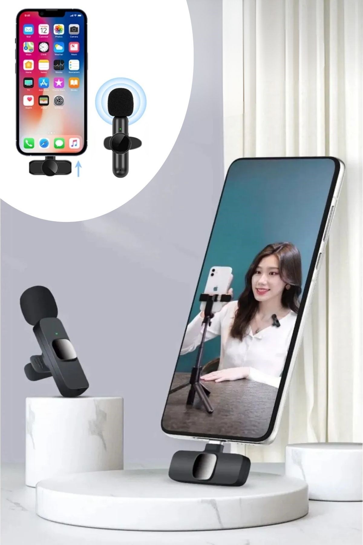 BUFFER® Type C Uyumlu İphone Dönüştürücülü Kablosuz Yaka Mikrofonu Android ve İphone Uyumlu Mini Mikrofon