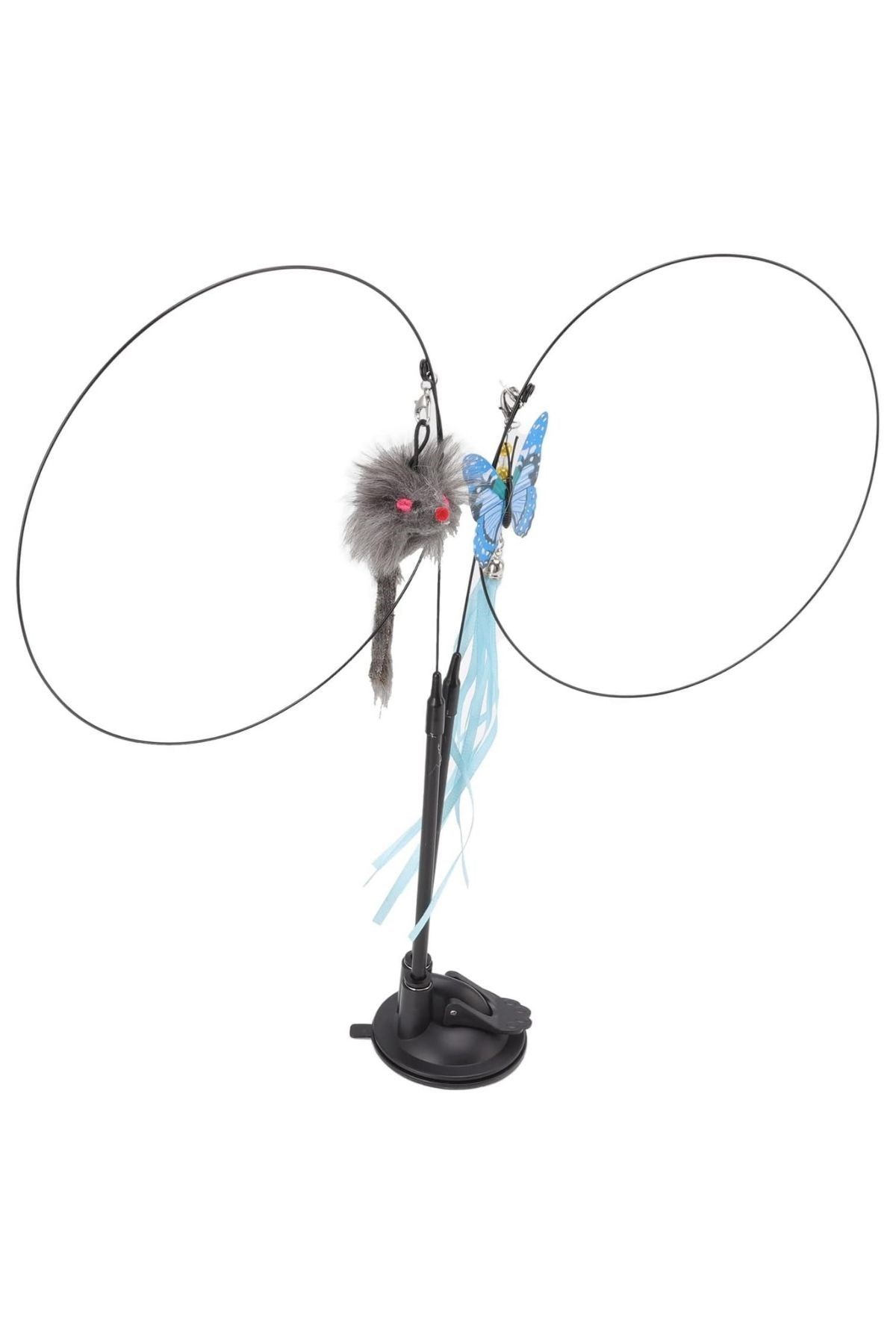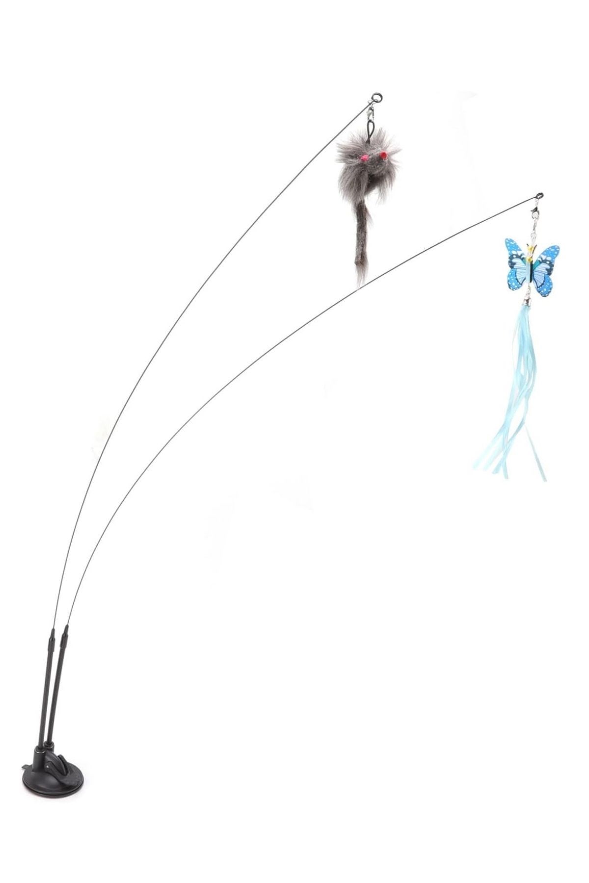 BUFFER® Vantuzlu Tüylü Zilli Olta Kedi Oyuncağı 2 Oltalı