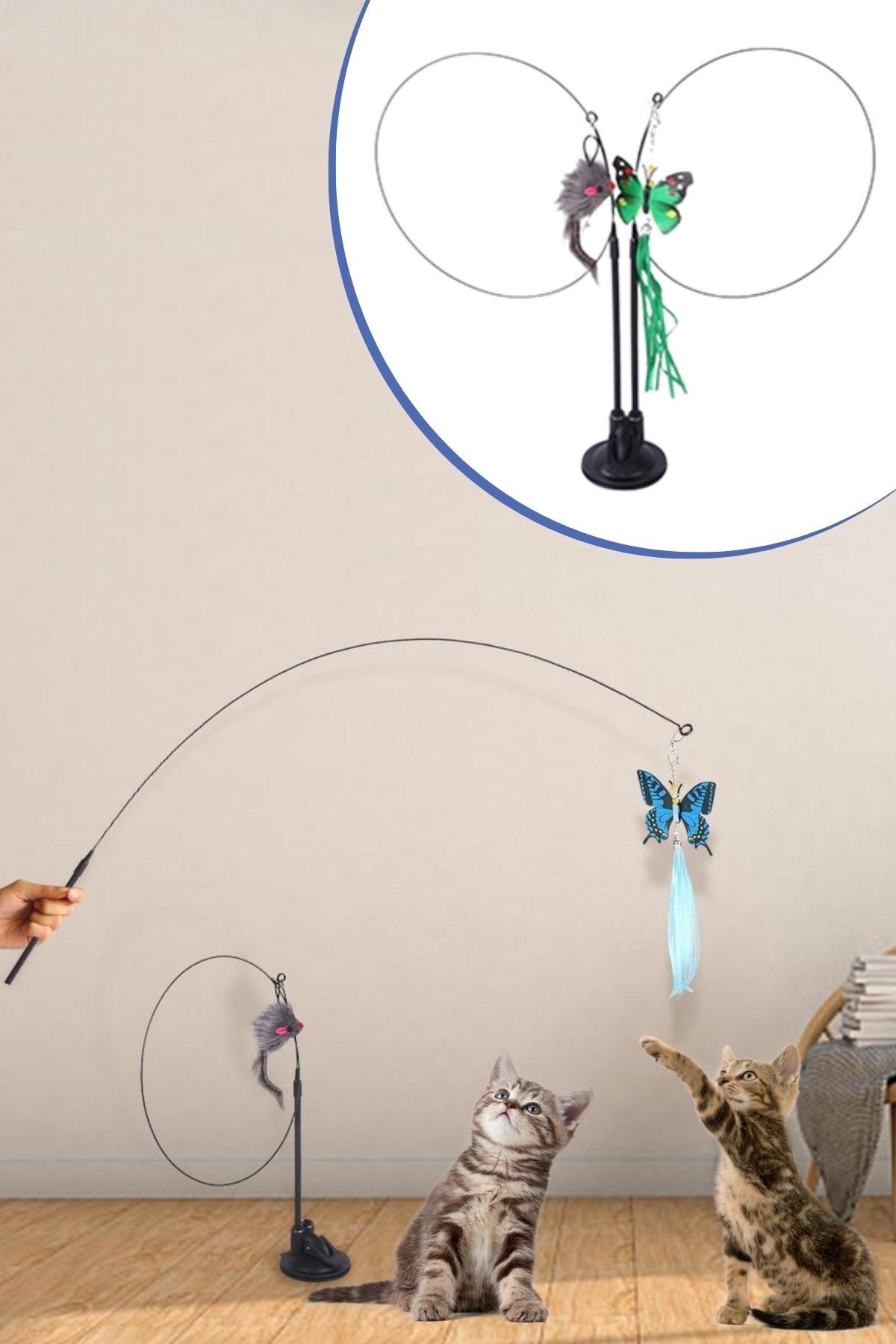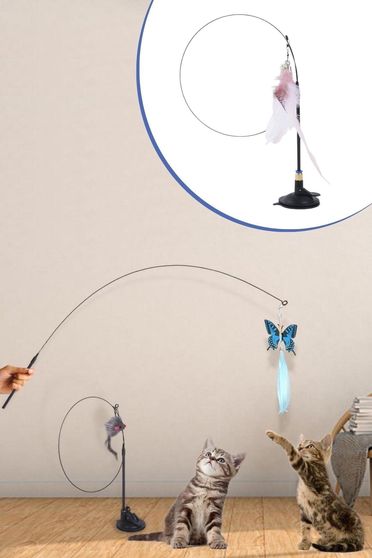 Paket İçeriği: 1 Adet BUFFER® Vantuzlu Tüylü Zilli Olta Kedi Oyuncağı 2 Oltalı