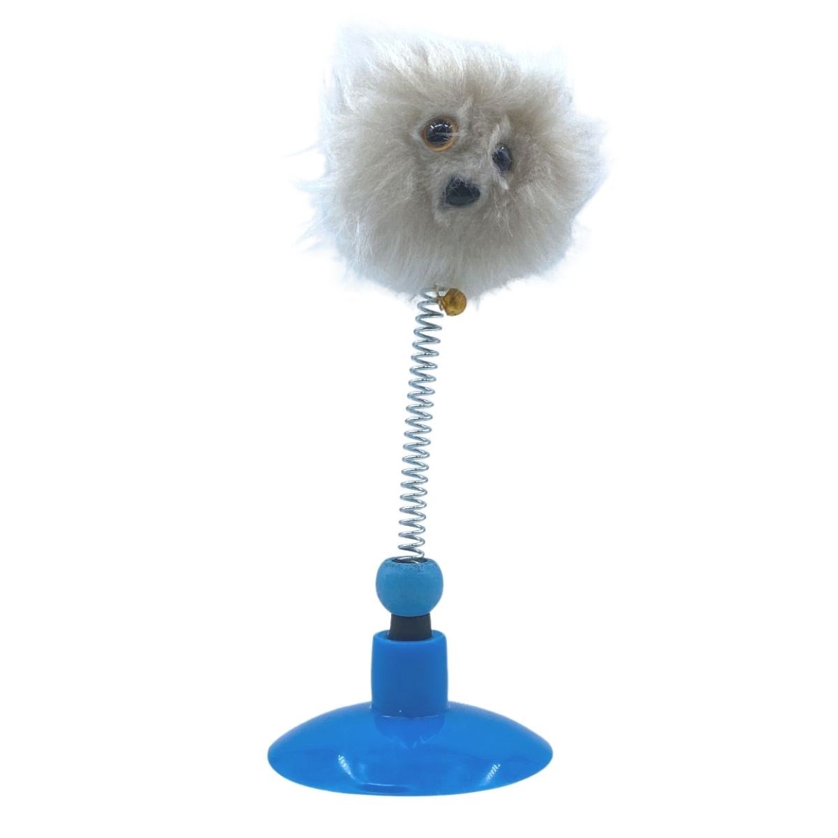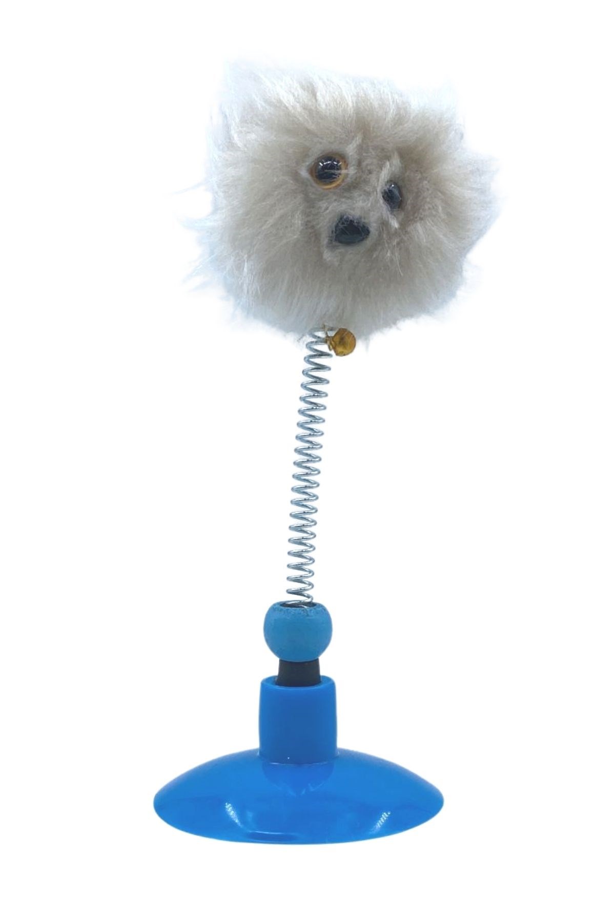 Zıp zıp serbest hareket eden rengarenk evcil hayvan oyuncağı bir ip, yay ve tüylü bir toptan yapılmıştır