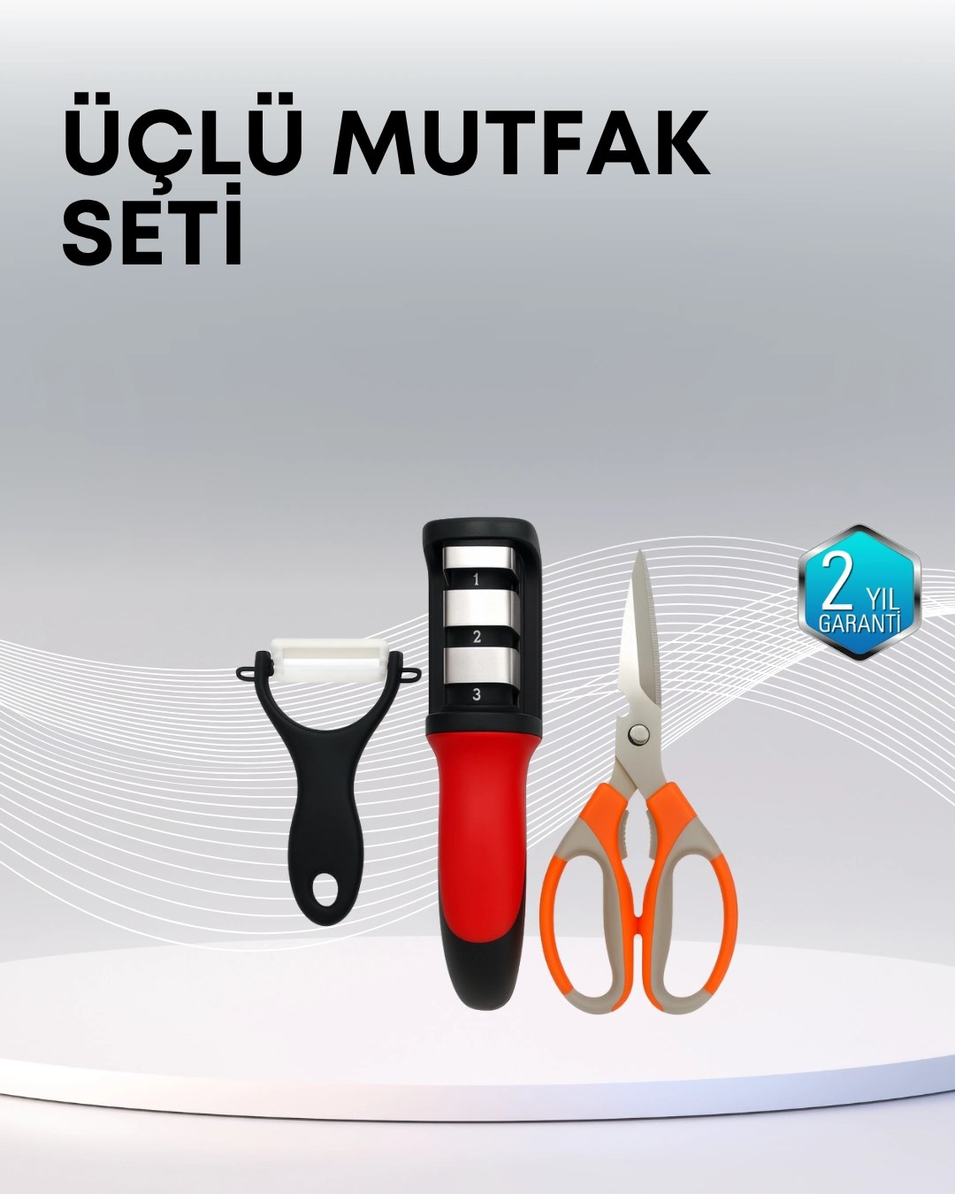 Çok Fonksiyonlu Mutfak Makas Seti – 3 Makas, Bileyici Ve Soyacak Dahil