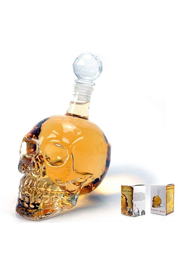 Crystal Head Kuru Kafa Cam Şişe Viski Likör Hediyelik Sürahi (1000 ML), şıklığı ve dikkat çekici tasarımıyla öne çıkan özel bir koleksiyon parçasıdır. 1000 ml hacmindeki bu cam şişe, kuru kafa figürüyle tasarlanmış olup, viski ve likör sunumlarınızı benzersiz bir şekilde tamamlar.