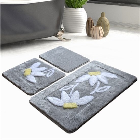 Daısy Gri 3 Lu Set Klozet Takımı, Banyo Paspas Seti Halısı-20934 Ürün 3 Parçadan Oluşmaktadır. %100 Akriliktir. Halı Ölçüleri: 60X100Cm-50X60Cm-40X60Cm Anti-Bakteriyel. Kaymaz Taban. Doğal Latex. İplik Yüksekliği Hav : 18-30 Mm. Çamaşır Makinesinde 30&Deg;C 'De Yıkanabilir. 24 Ay Garanti Süresi. Ayakaltı Konforu Sağlar. Yumuşak Ve Rahattır. Aşınmaya Karşı Dayanıklı. Güzel Görünümü Uzun Yıllar Korur. Kabartma Ve Figürlü %100 El Yapımıdır. Chilai Home Banyo Halıları Akrilik İplikten Üretilmektedir. Birbirinden Güzel Ve Trend Renklerle Banyonuzun Dekorasyonuna Uygun Olarak Tasarlanan Bu Halılarımız Kolay Kuruyarak Koku Yapmama Özelliğine Sahiptir.