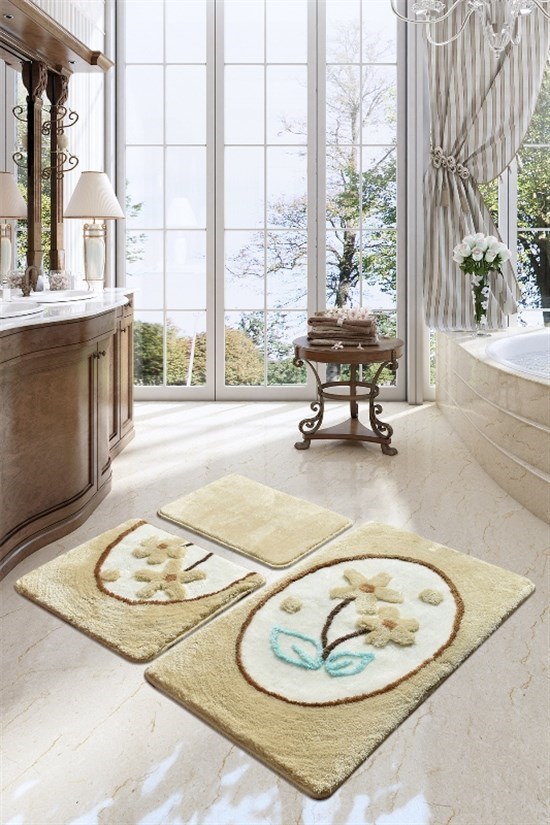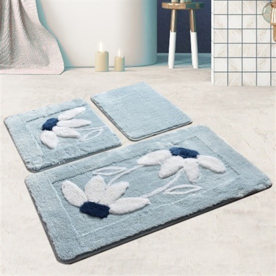 Daısy Mavi 3 Lu Set Klozet Takımı, Banyo Paspas Seti Halısı-20936 Ürün 3 Parçadan Oluşmaktadır. %100 Akriliktir. Halı Ölçüleri: 60X100Cm-50X60Cm-40X60Cm Anti-Bakteriyel. Kaymaz Taban. Doğal Latex. İplik Yüksekliği Hav : 18-30 Mm. Çamaşır Makinesinde 30&Deg;C 'De Yıkanabilir. 24 Ay Garanti Süresi. Ayakaltı Konforu Sağlar. Yumuşak Ve Rahattır. Aşınmaya Karşı Dayanıklı. Güzel Görünümü Uzun Yıllar Korur. Kabartma Ve Figürlü %100 El Yapımıdır. Chilai Home Banyo Halıları Akrilik İplikten Üretilmektedir. Birbirinden Güzel Ve Trend Renklerle Banyonuzun Dekorasyonuna Uygun Olarak Tasarlanan Bu Halılarımız Kolay Kuruyarak Koku Yapmama Özelliğine Sahiptir.
