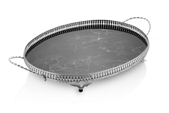 Akıtma Boyalı Orta Oval Gümüş Tepsi - 30380