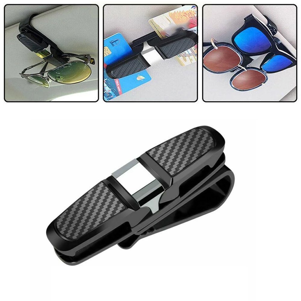 Araç İçi Gözlük Kart Tutacağı 2 Klipsli 180° Döner Karbon Desenli