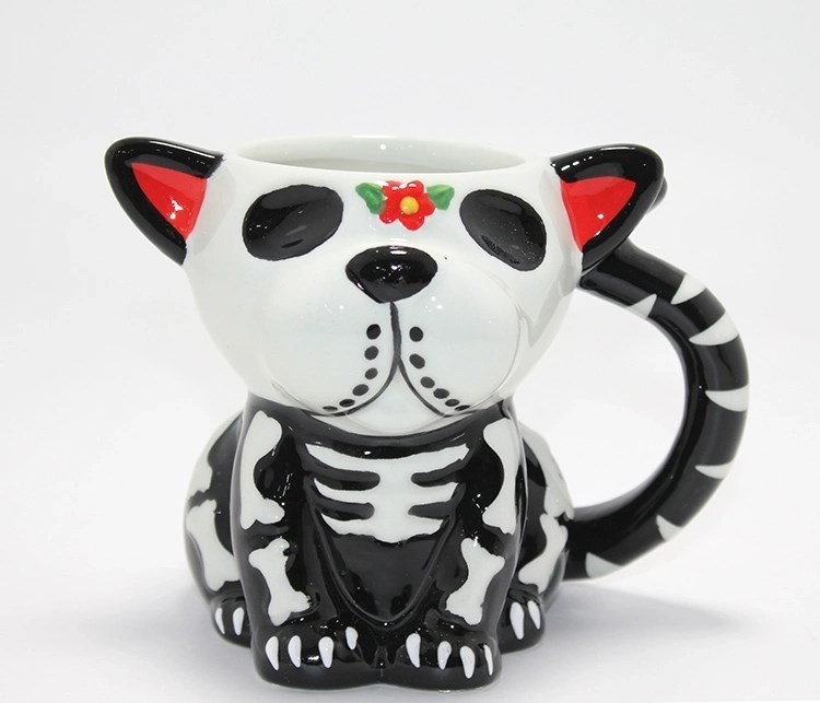 Day Of The Dead Köpek Figürlü 3d Kabartmalı Porselen Kupa Alk4896