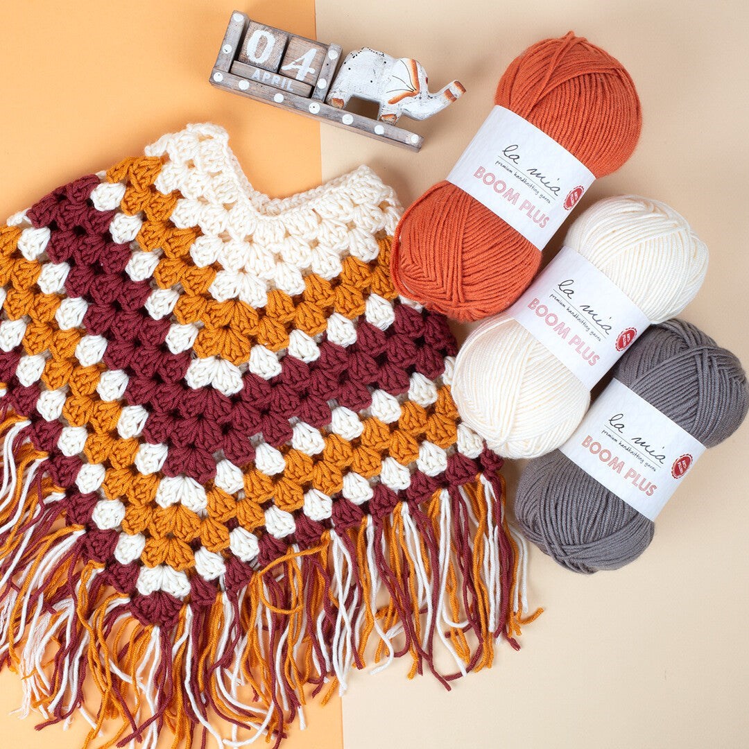 La Mia Boom Plus Anti-pilling (low-pilling) özellikli La Mia Boom Plus serisi, bebek cilt sağlığı için önemli olan tüylenmeme özelliğine sahiptir. Bu özel ip, tüylenme yapsa bile kendi kendine tüylenmeyi döken bir özelliğe sahiptir. İlmek Bilgisi: 10x10 cm = 22 sıra x 17 ilmekKullanım Alanı: Her mevsim için uygundur. Kazak, hırka, süveter yapımında kullanılır.