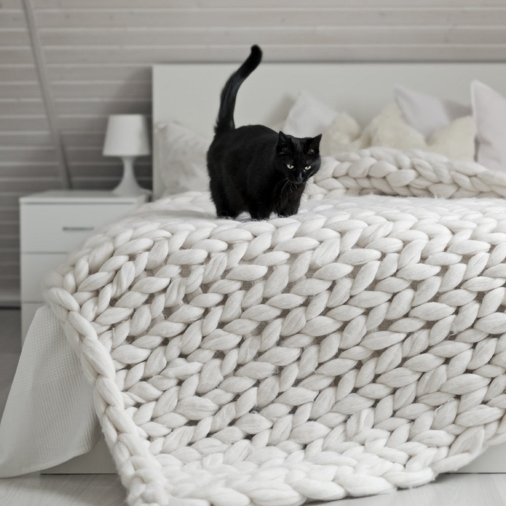 100% merino wool, La Mia Jumbo is a very thick yarn which is great for arm knitting. You can also use this beautiful yarn with big circular knitting needles or hooks like 20mm or 25mm.