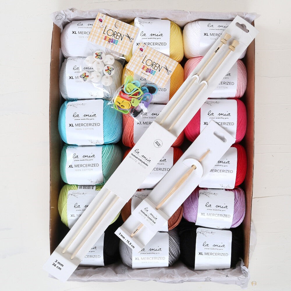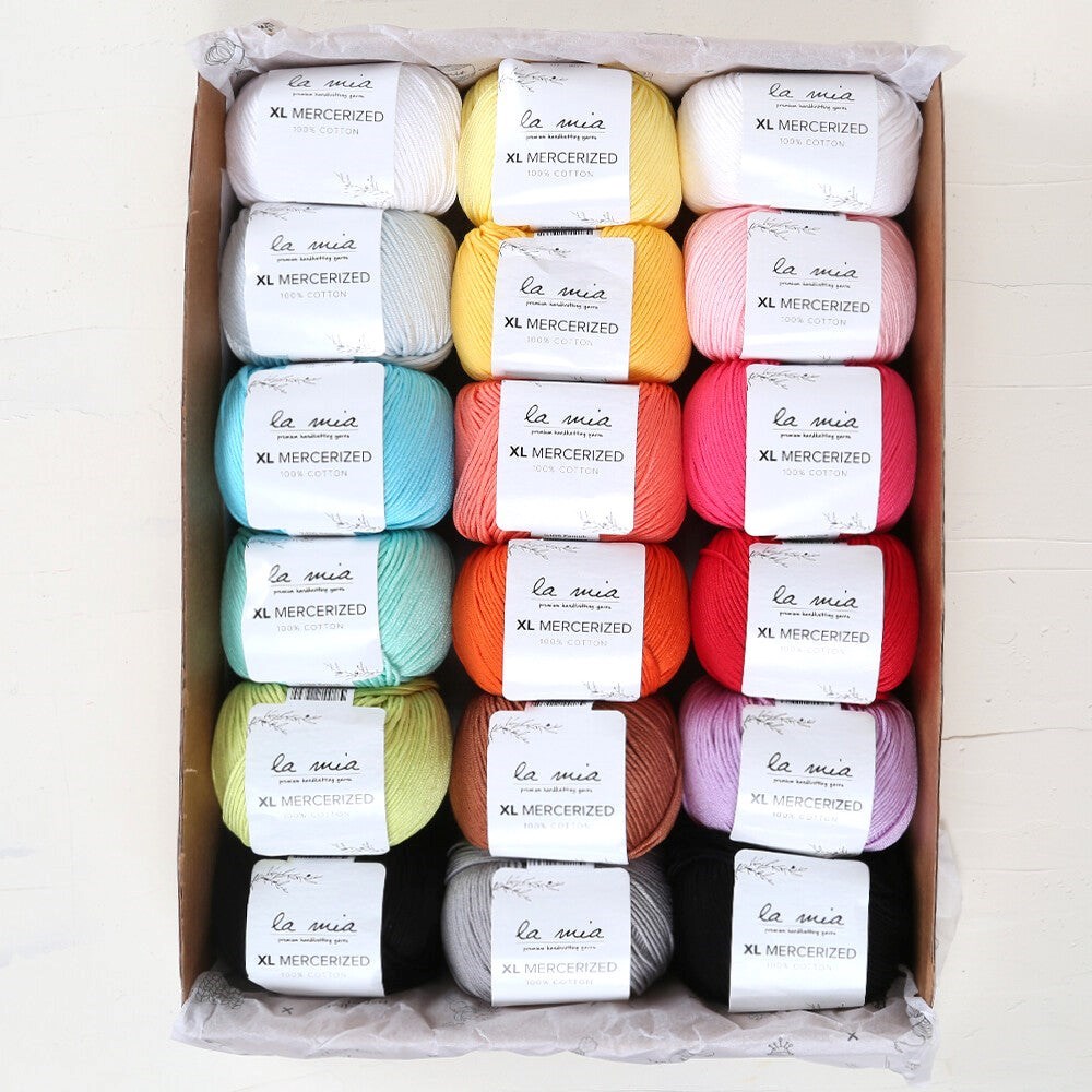 - 18 farklı renkten oluşan 18 adet La Mia XL Mercerized Cotton İp