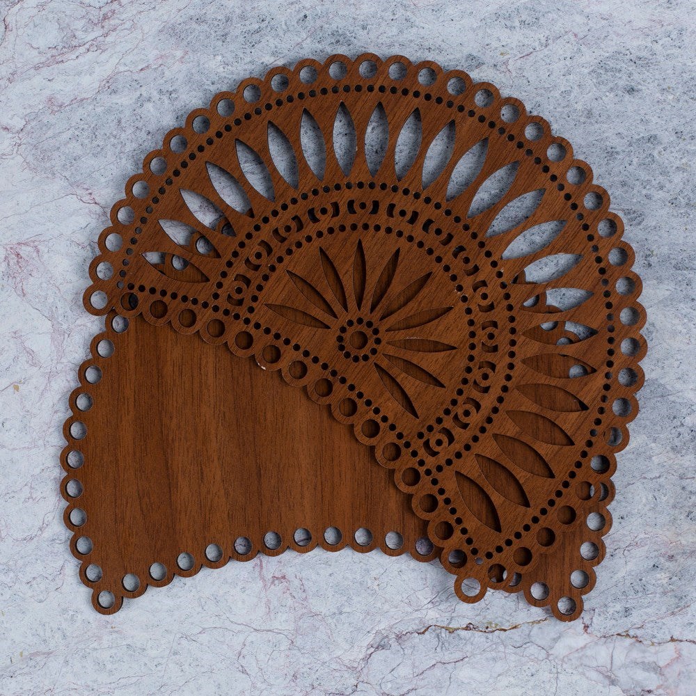 Loren Ahşap Oymalı Desenli Makoron Çanta Yanı Plakası