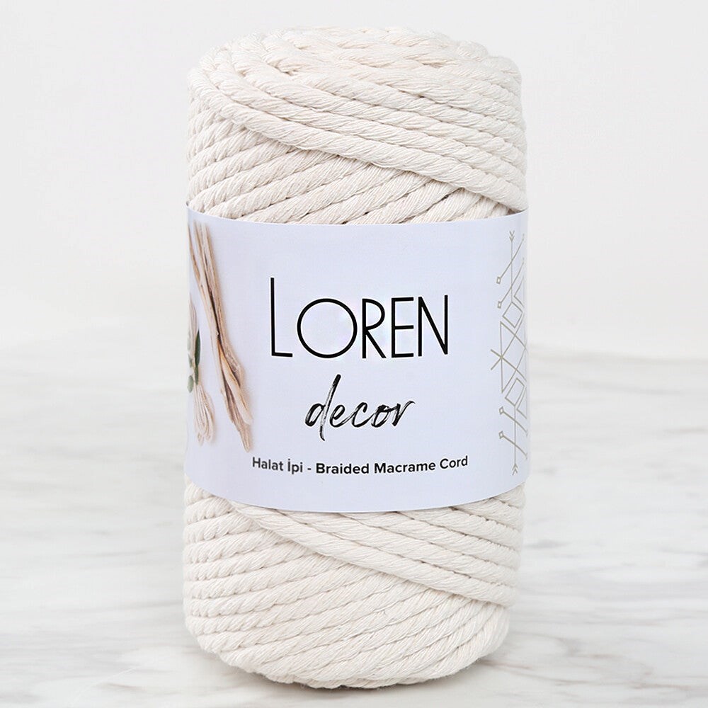 Makrome tığ veya şiş kullanmadan elle birbiri arasından geçirilen ipliklerden oluşan bir sanattır. Loren Decor halat ipliği 3,5 mm kalınlığındadır. Yumuşak aynı zamanda da dayanıklıdır.
