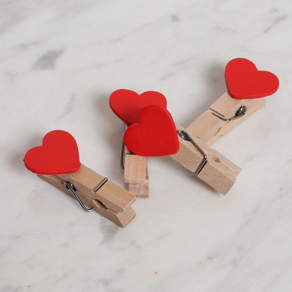 Loren Kırmızı Kalpli 10'lu Ahşap Mandal