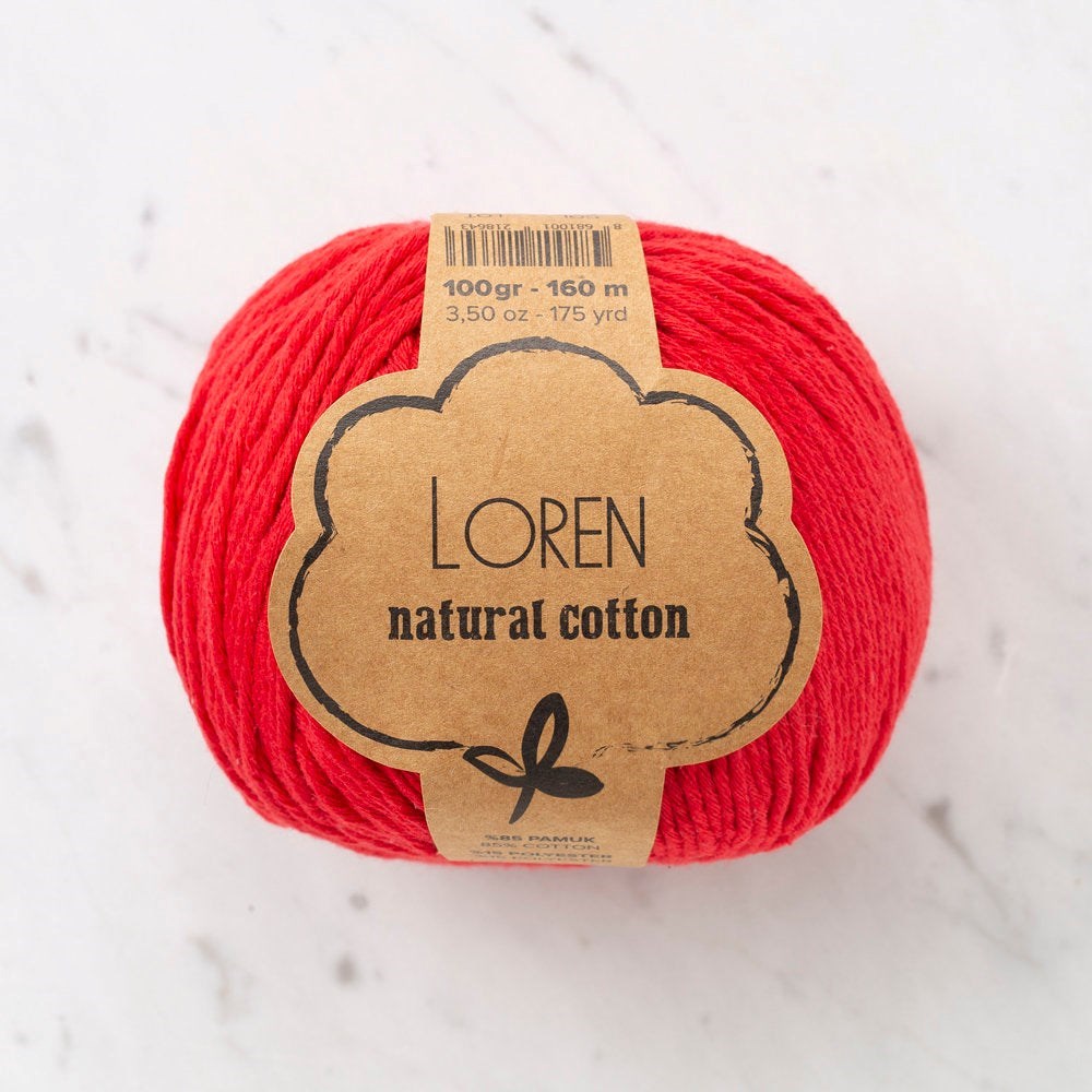 Loren Natural Cotton Kırmızı El Örgü İpi - R003 - 33903