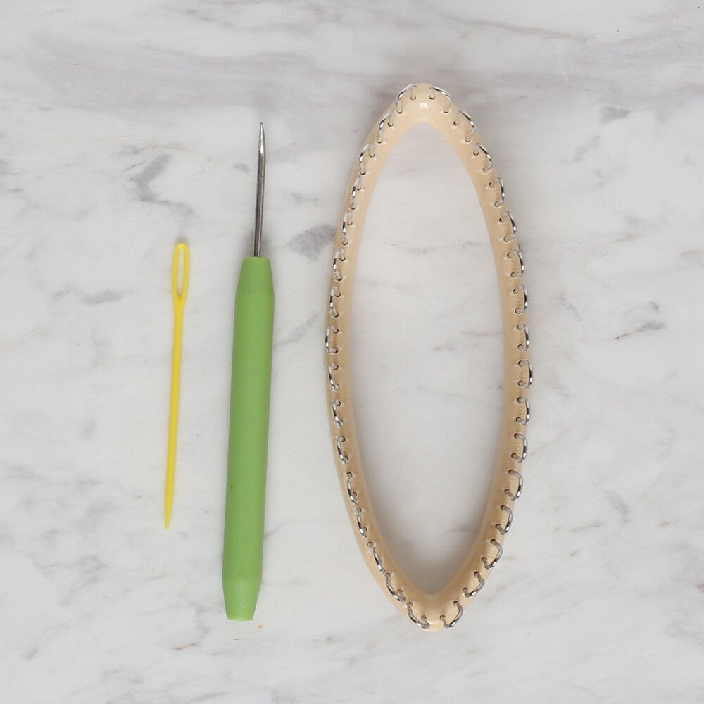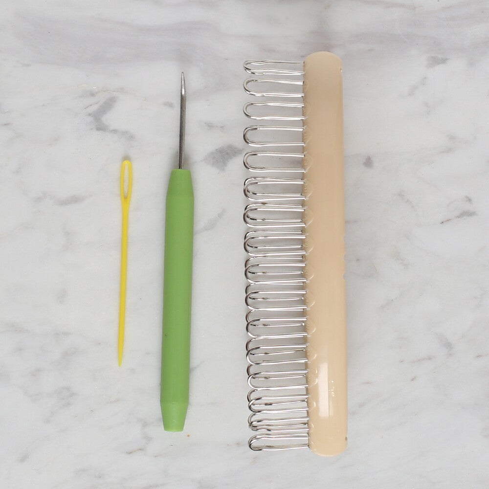 Kolaylıkla çorap, bileklik, tozluk gibi yuvarlak formlu modelleri örmenize yardımcı olacak 32 adet dişi bulunan çorapmatiktir. İçerisinde ilmeği attırmak için ucu eğri tığı ve plastik yün iğnesi de bulunmaktadır.