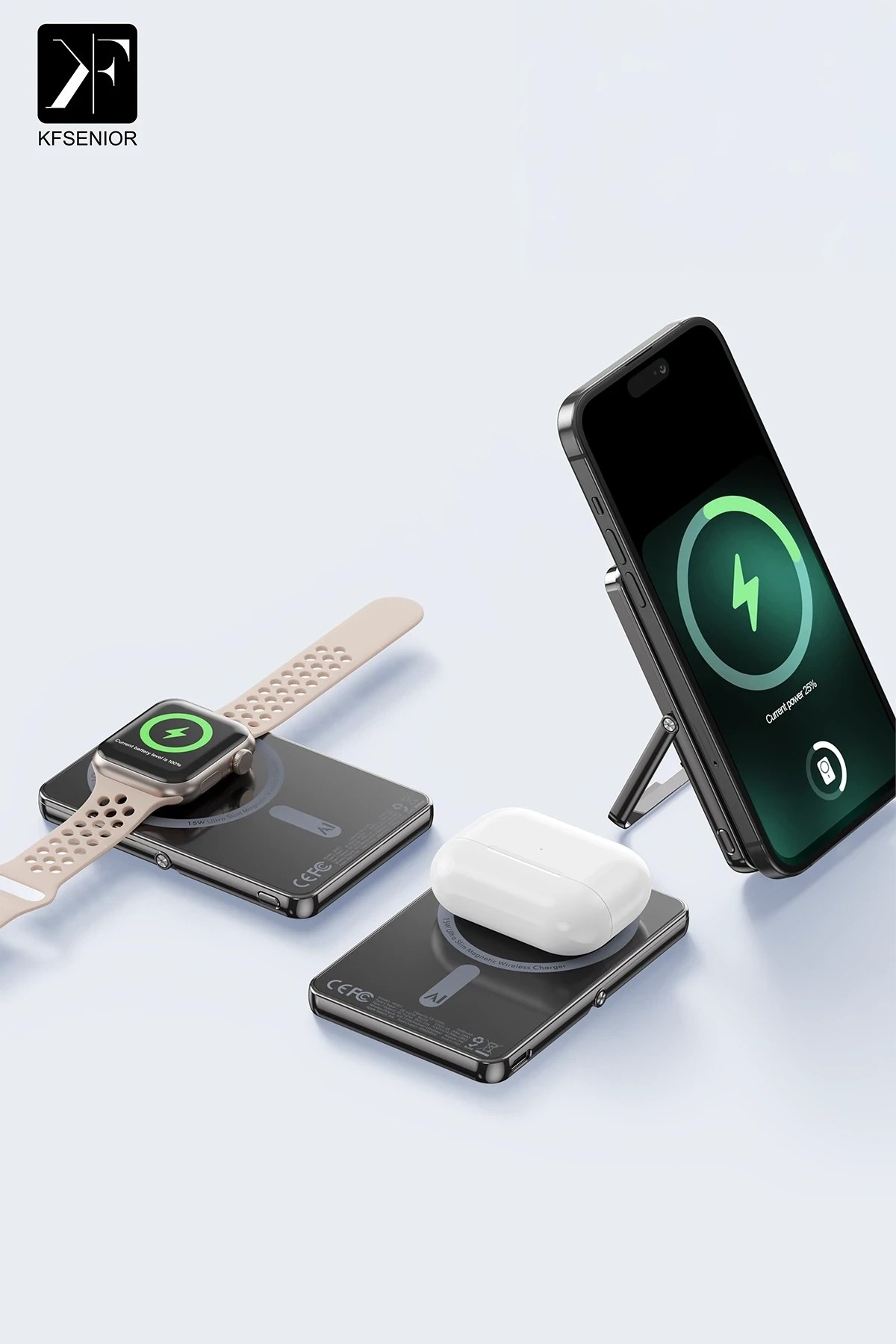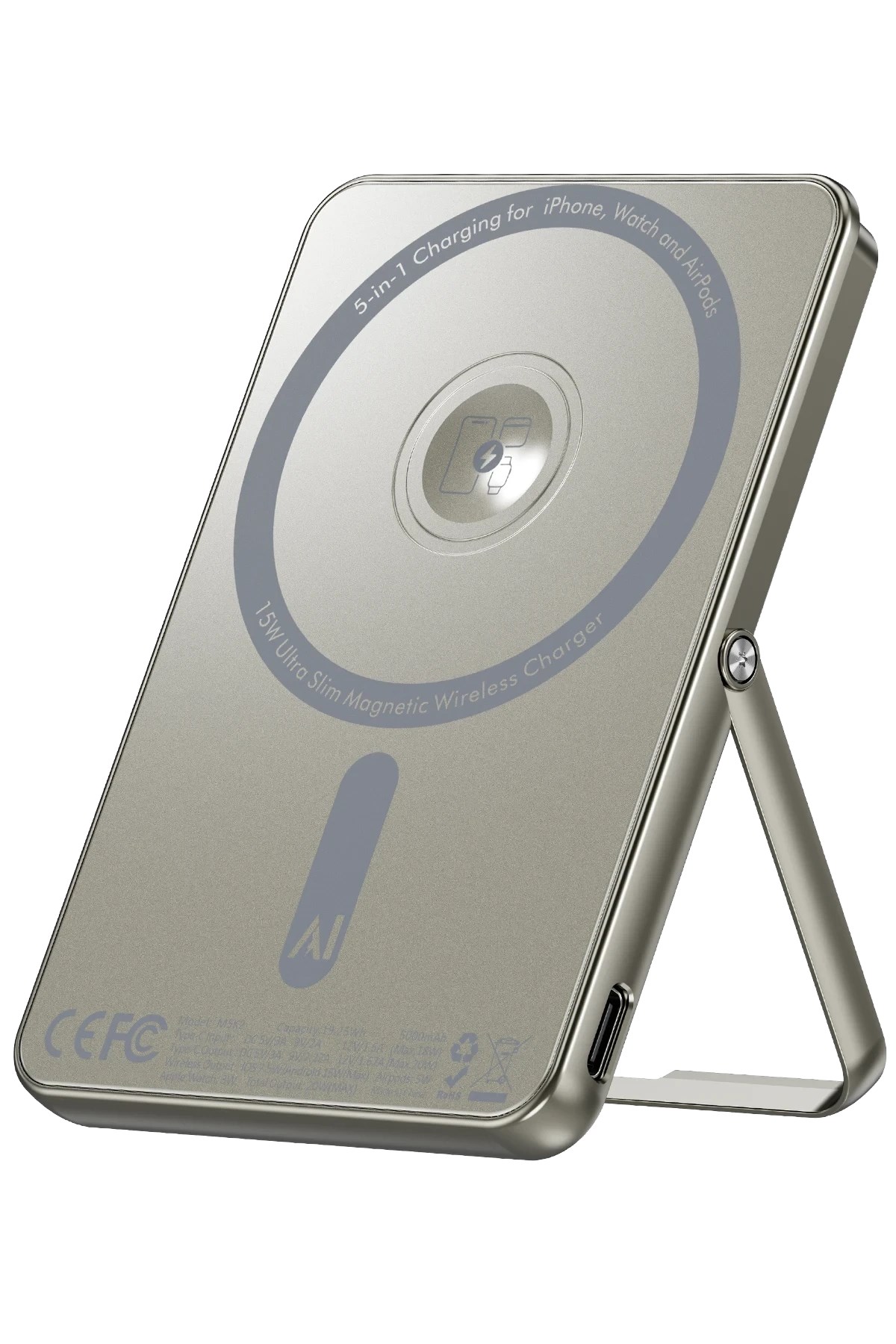 PW580 5.000 mAh 20W Type-C 15W Kablosuz Şarj 3W Saat Şarj ve 5W Kulaklık Şarj Destekli PD Hızlı Şarj Magsafe Powerbank