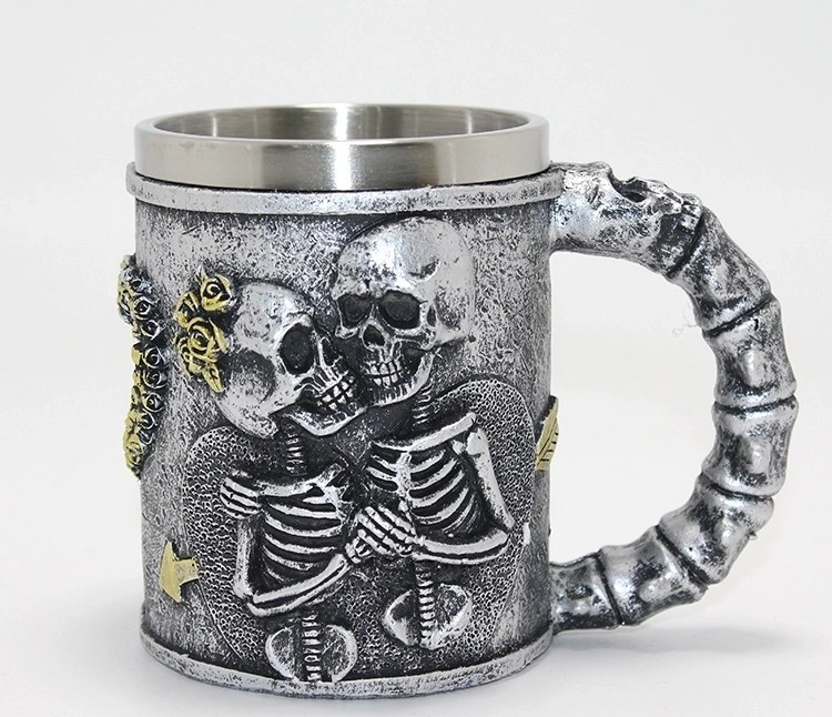 Sonsuz Aşk İskelet Tasarımlı 3d Kabartmalı Çelik Kupa Bardak Alk4370