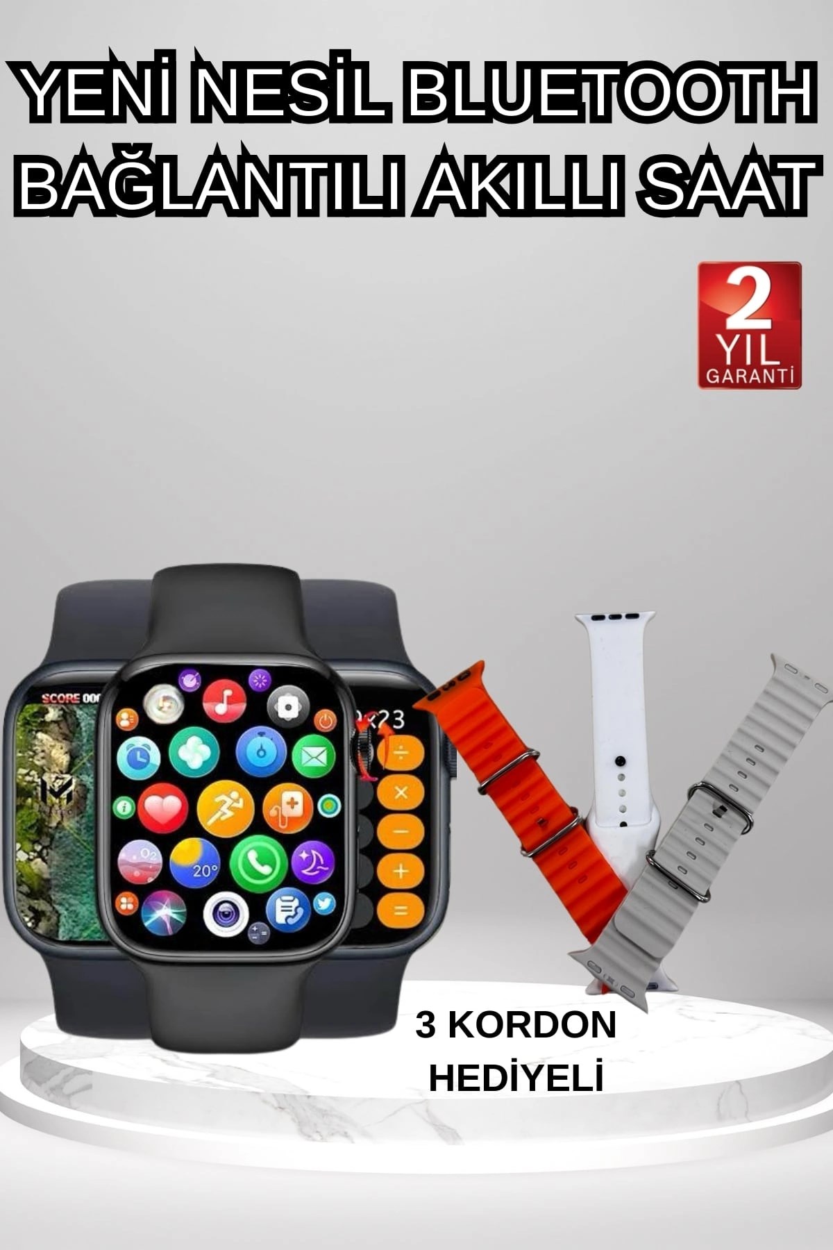 Akıllı Saat Arama Görüşme Bildirim Görme Uyku Ve Sağlık Takibi Nabız Ölçer 3 Kordon Hediyeli
