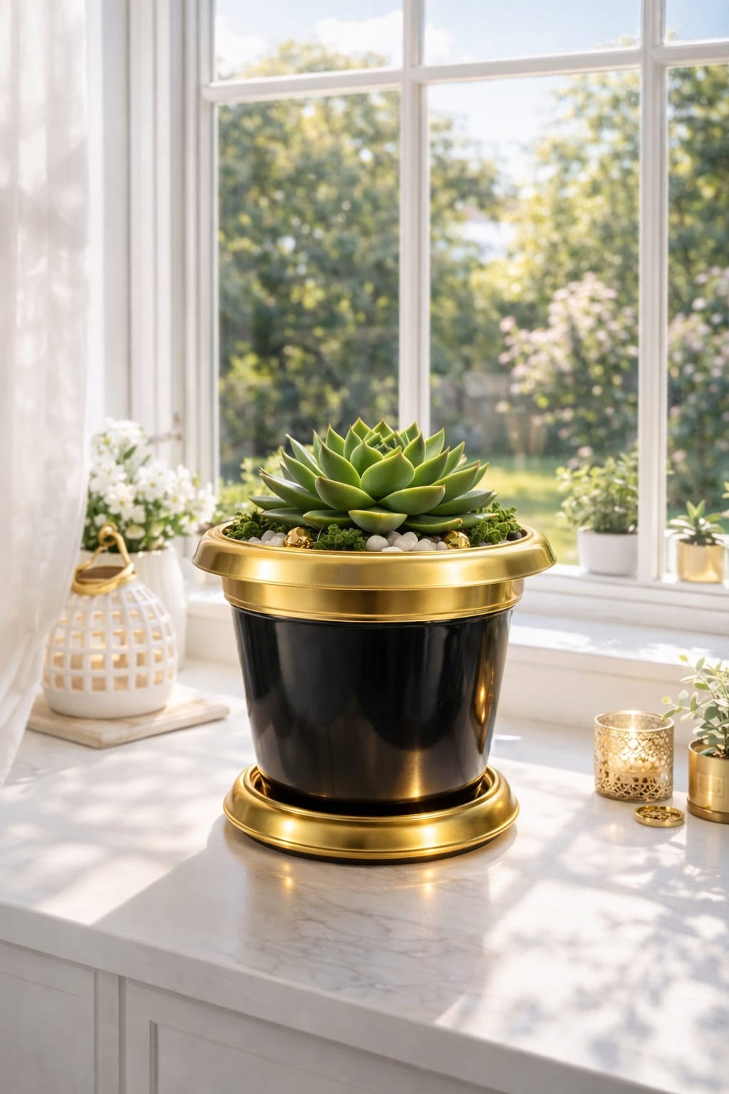 🌿 Gold Detaylı 1.7 Litre Dekoratif Plastik Saksı