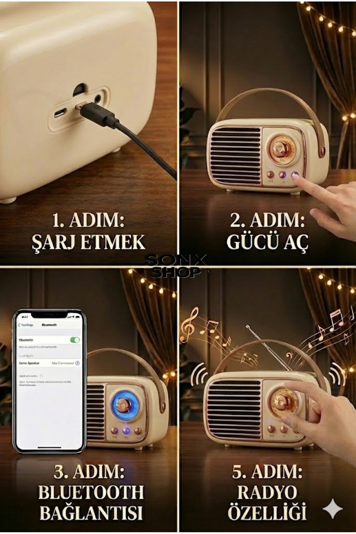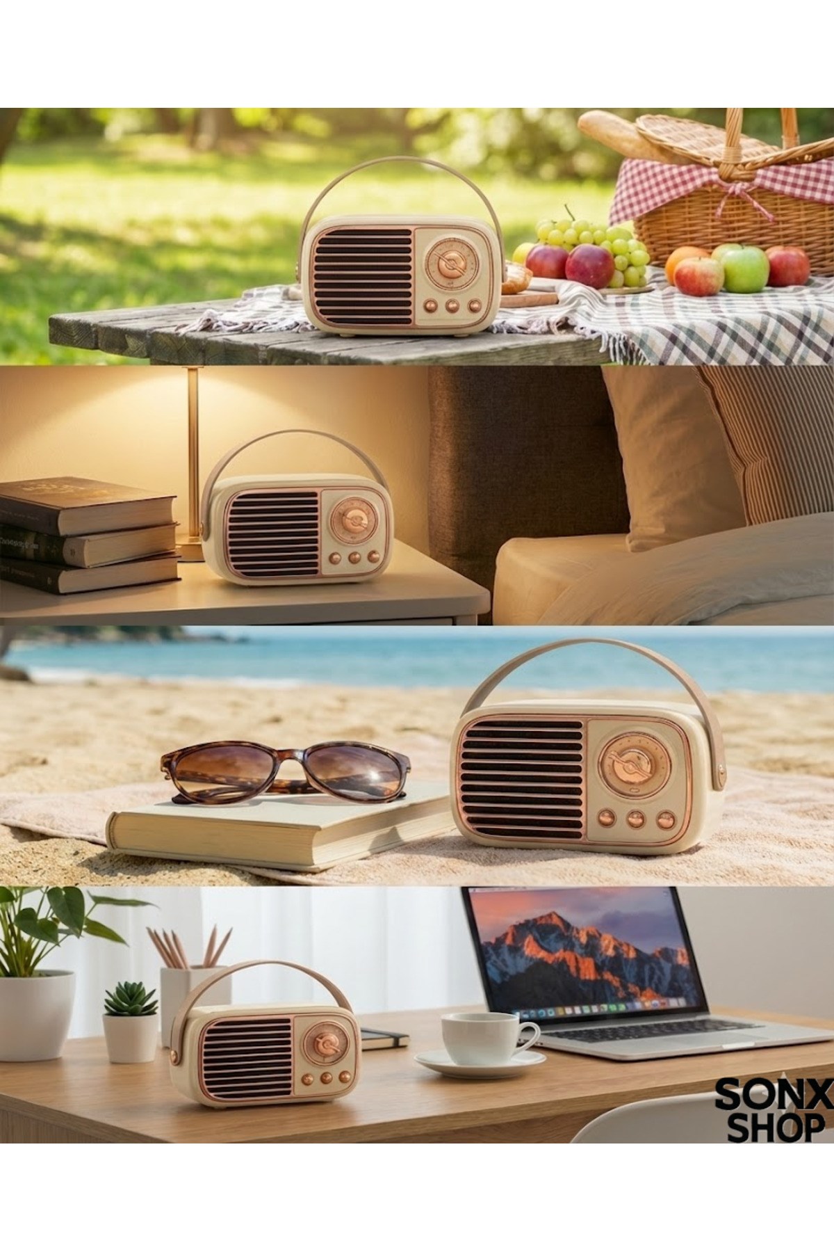 Retro Bluetooth Radyo Hoparlör USB TF Kart AUX FM Taşınabilir Nostaljik Tasarım