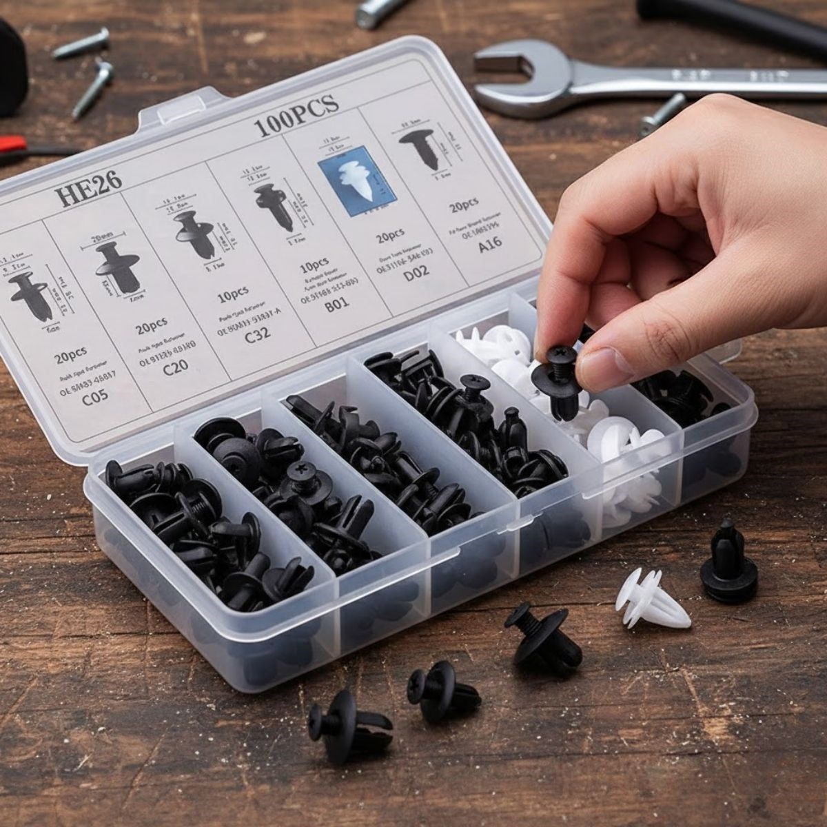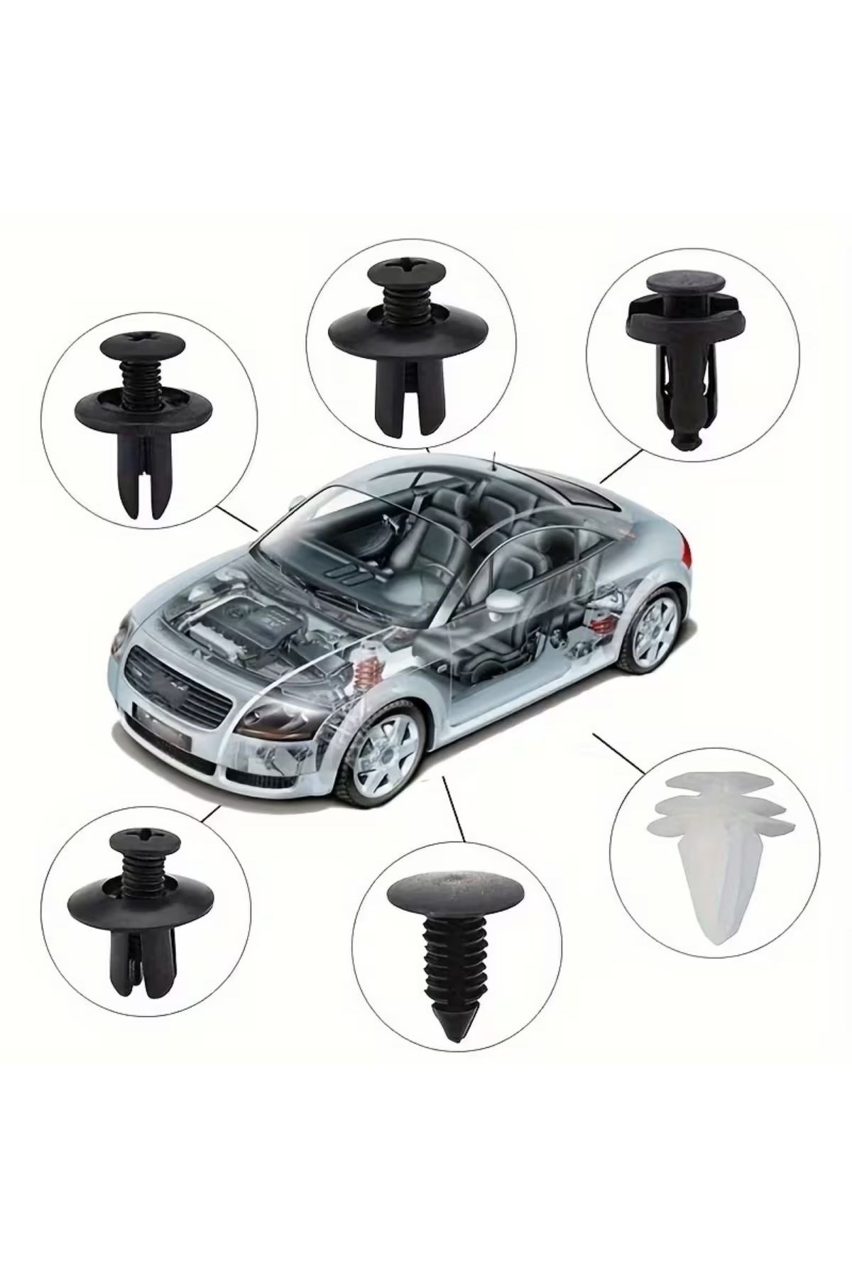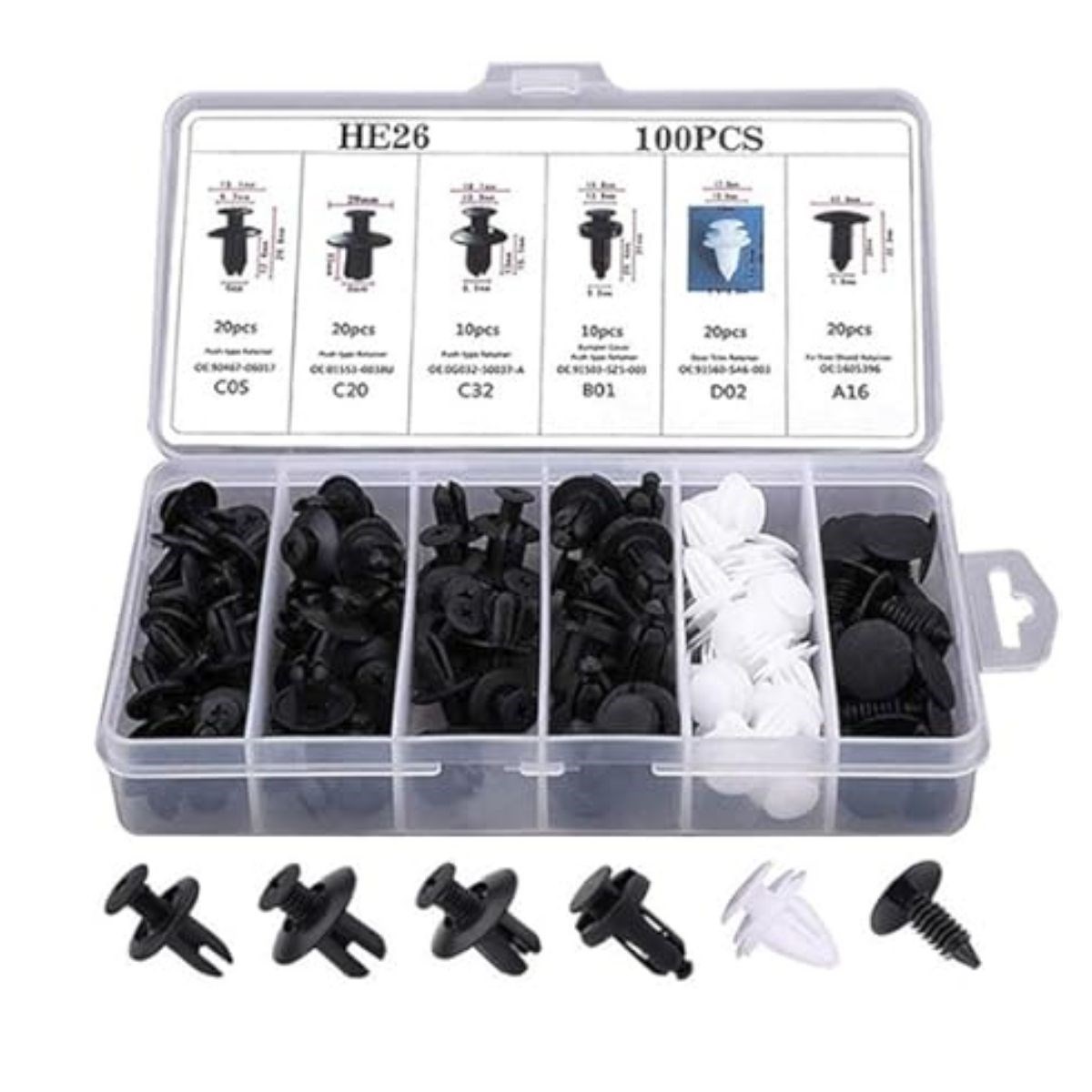 Plastik Bağlantı Elemanları Seti 100 Parça – Oto Kaplama Klipsi, Tampon ve Trim Sabitleme Perçinleri, Çok Amaçlı Klips Seti