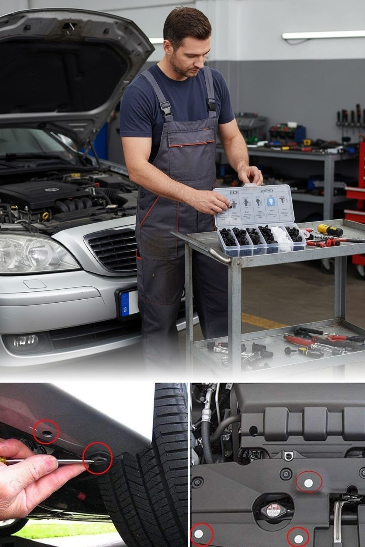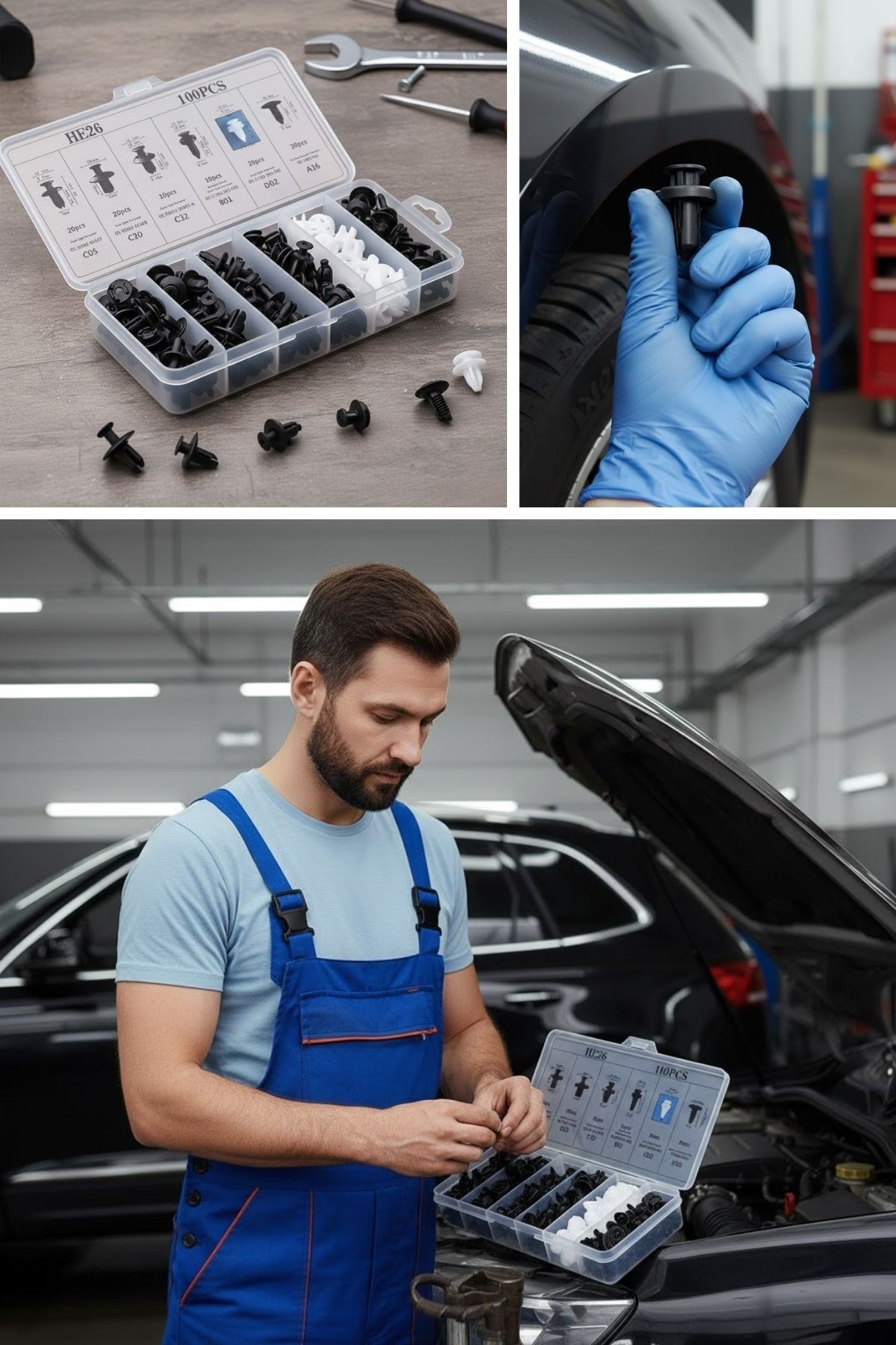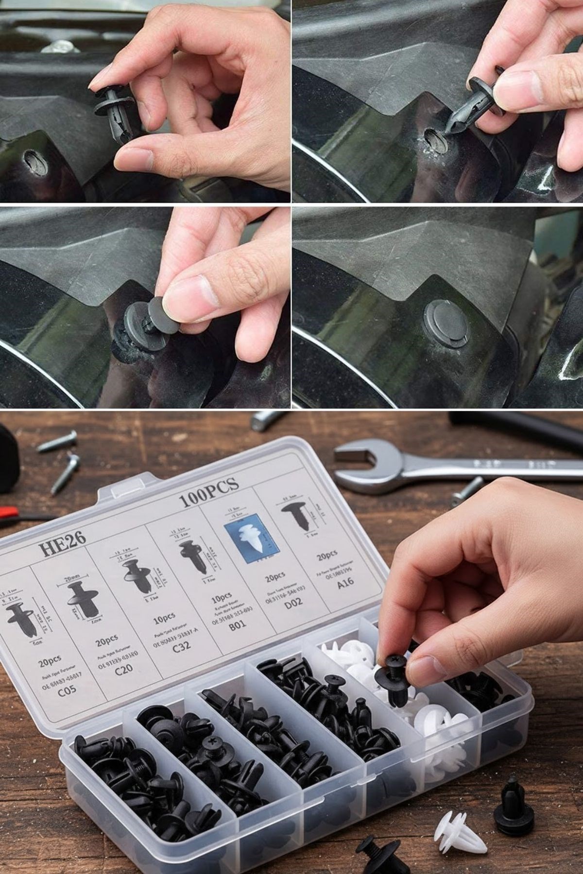 Plastik Bağlantı Elemanları Seti 100 Parça – Oto Kaplama Klipsi, Tampon ve Trim Sabitleme Perçinleri, Çok Amaçlı Klips Seti