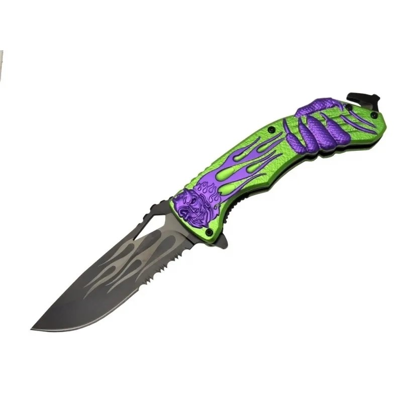 Mx20b Testereli Outdoor Çakı 22 Cm - Yeşil Metal Sap, Otomatik, İp Kesme