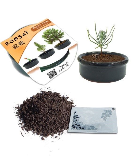 BUFFER® Toprak Saksılı Bonsai Fıstık Çam Bitkisi Mini Ekim Kiti Seti