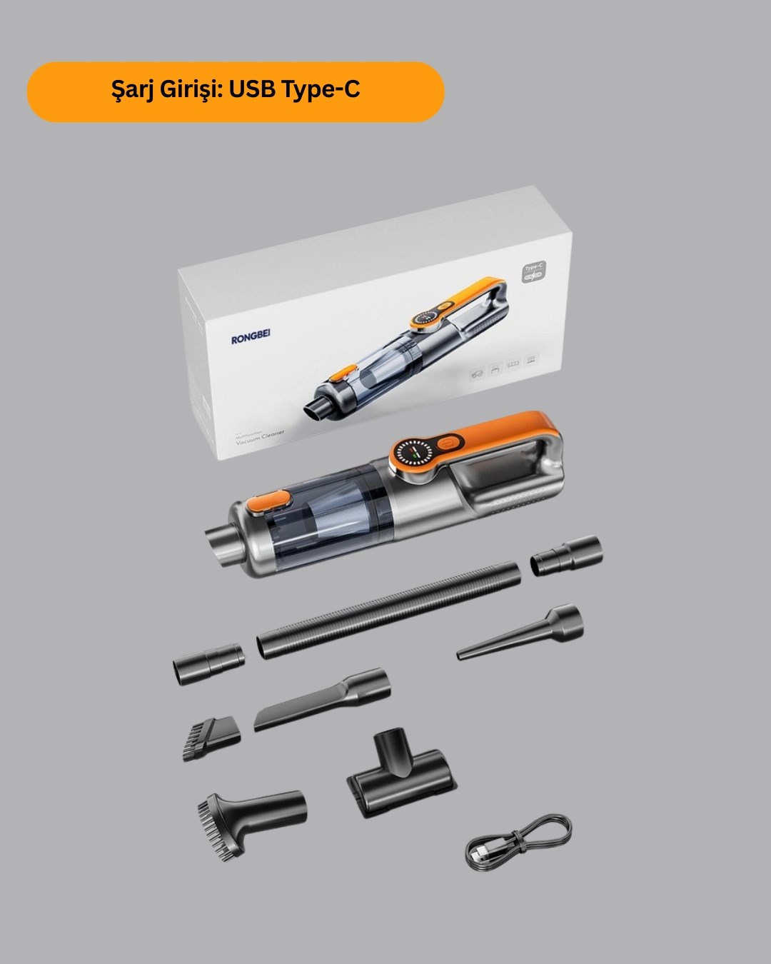 Üflemeli Güçlü Vakumlu Ev Ofis Araç Süpürgesi El Süpürgesi Şarjlı