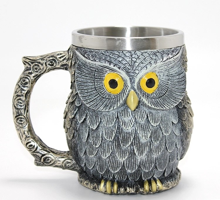 Bilge Baykuş Figürlü 3d Kabartmalı Paslanmaz Çelik Kupa Bardak Alk4383