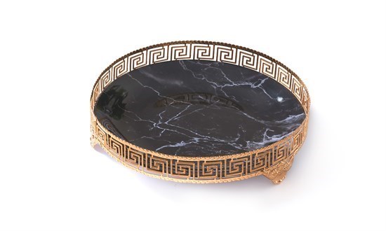 Cevher Servis Tepsi 28Cm / Gümüş Ve Altın - 30194