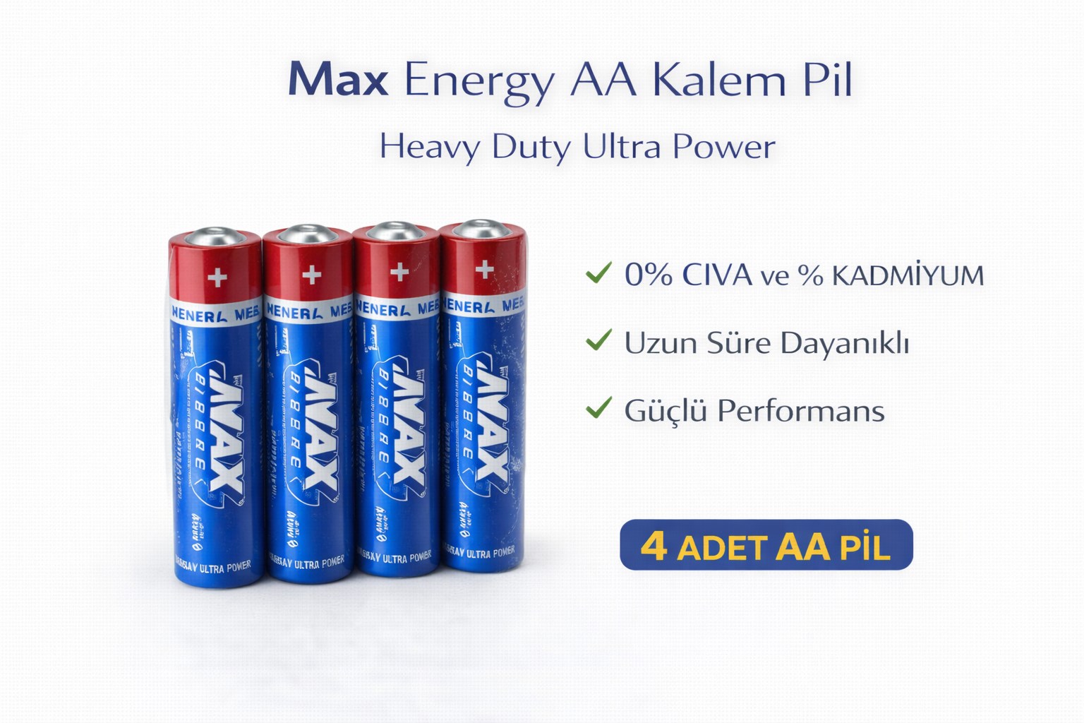 Max Energy AA Kalem Pil 1.5V R6 Heavy Duty Ultra Power 4lü 1 Paket