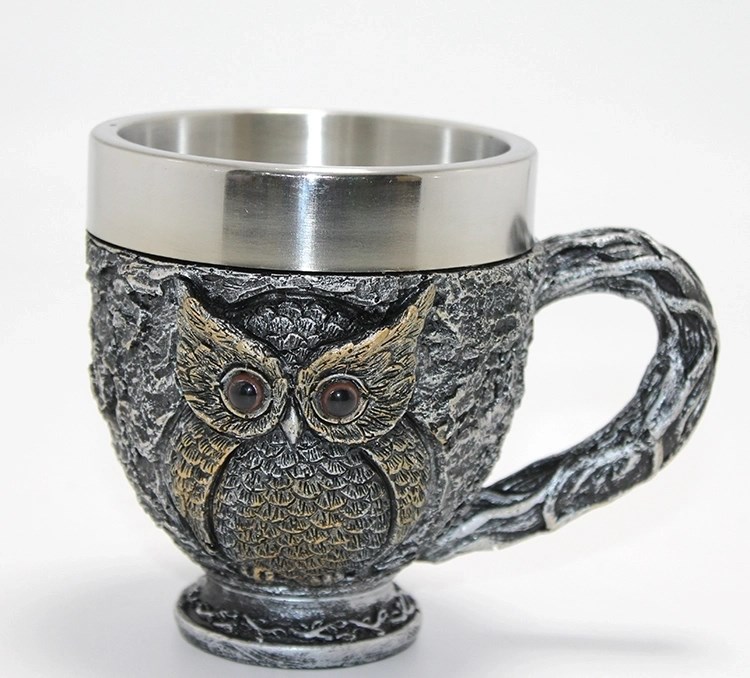 3d Kabartmalı Baykuş Büstü Paslanmaz Çelik Kupa Bardak Alk4482