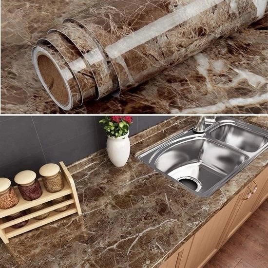 Mermer Desenli Masa Tezgah Mutfak Su Geçirmez Yapışkanlı Folyo Sticker Kahverengi 5x0,6m