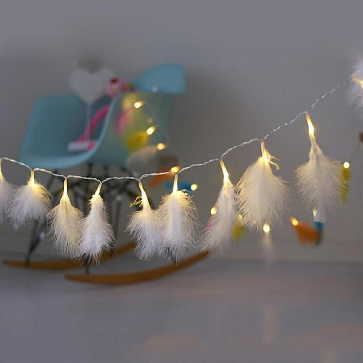 BUFFER® Dekoratif Beyaz Kuş Tüyü Dekoratif Şerit Led Pilli Işık Zinciri