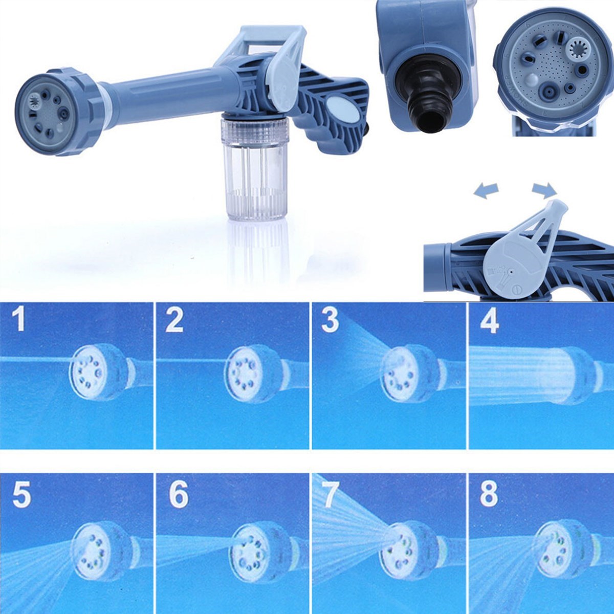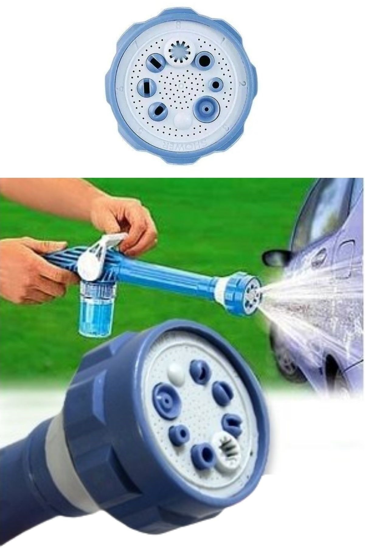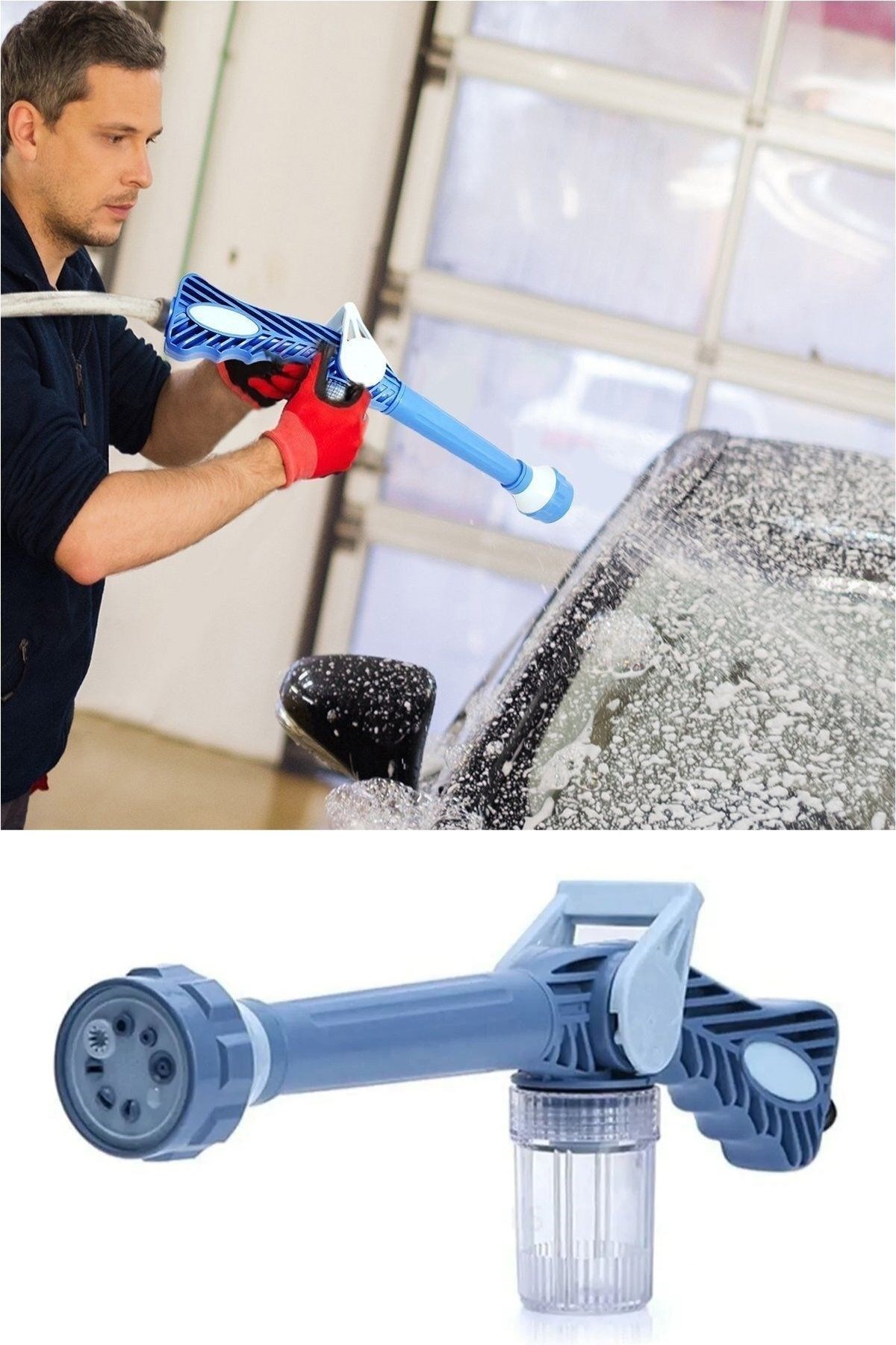 Tazyikli Araba Yıkama Aletinin geliştirilmiş harika başlığı sayesinde 8 farklı sulama şekli sağlar Özel detarjan haznesi ile köpüklü yıkama yapabilirsiniz!