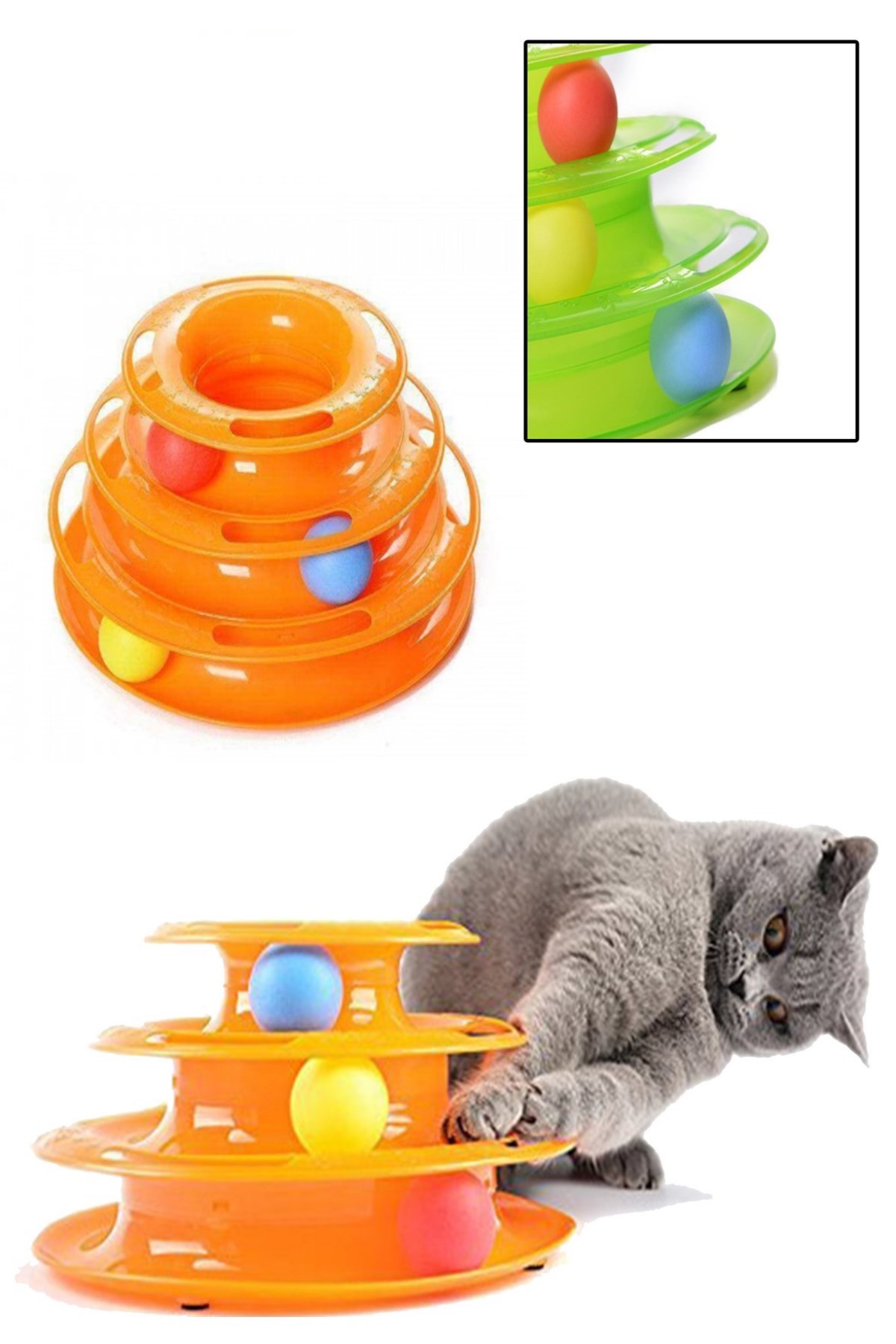Sevimli Dostunuz Minik Kedinizi Eğlendirmek İçin Muhteşem Bir Oyuncağımız Var; Bu Sevimli 3 katlı kedi oyuncağı ile minik Dostunuz Saatlerce Oynayarak Eğlenecek!