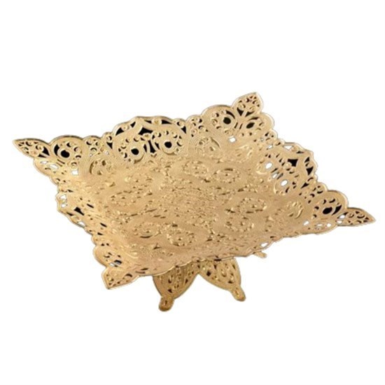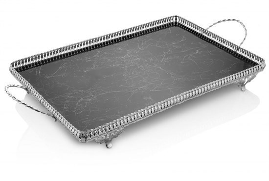 Akıtma Boyalı Büyük Dikdörtgen Gümüş Tepsi - 30386