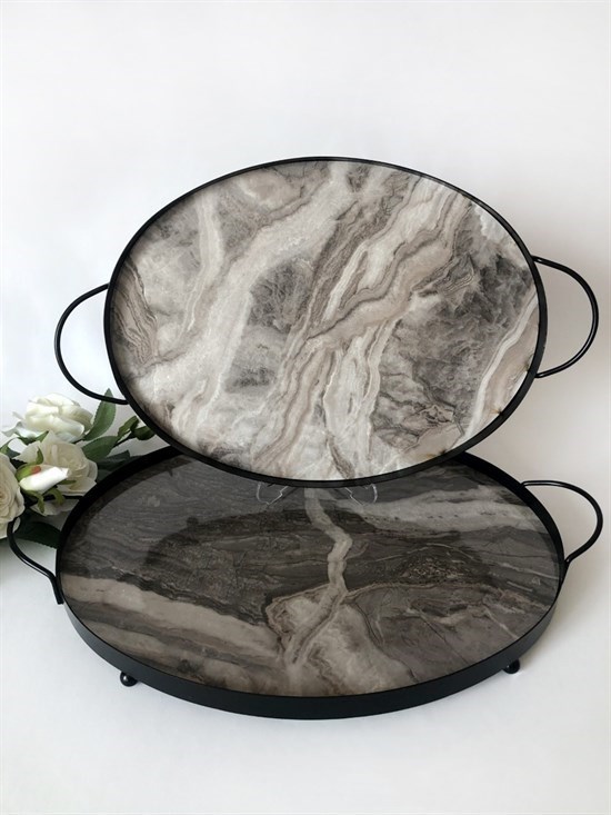 Werony 2li Mermer Desen Oval Tepsi - 30411
