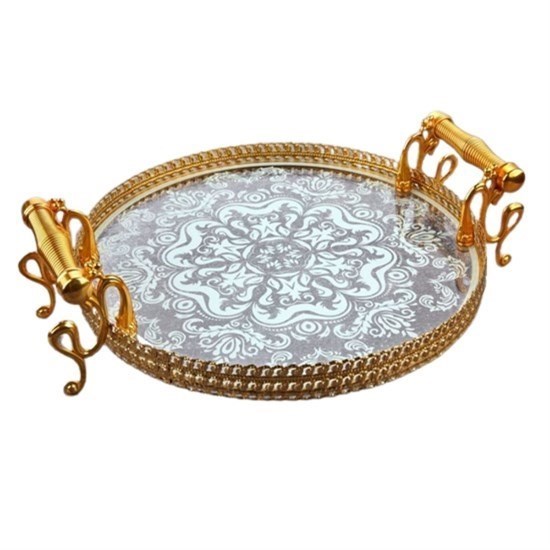 Werony Zamak Saplı Lüks Yuvarlak Tepsi 35cm - 30484