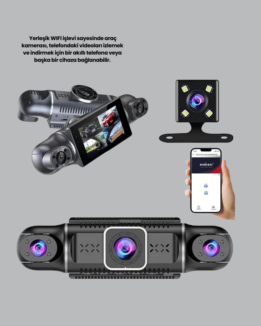 G-sensörlü 3'lü Kayıtlı Araç Kamerası