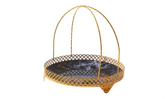 28Cm / Gümüş Ve Altın Saplı Cevher Servis Tepsi - 30195